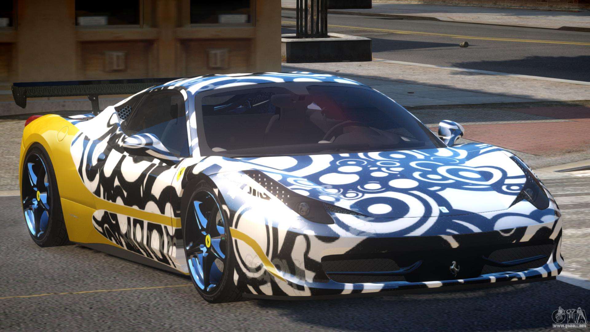 Descargar mod Ferrari 458 SRI-37 PJ4 para GTA 4 los enlaces de abajo. De forma predeterminada, el mod se establece en dos clics para reemplazar Turismo. Gracias a nuestro instalador automático con la instalación, puede sustituir a cualquier otra norma de transporte en el juego.