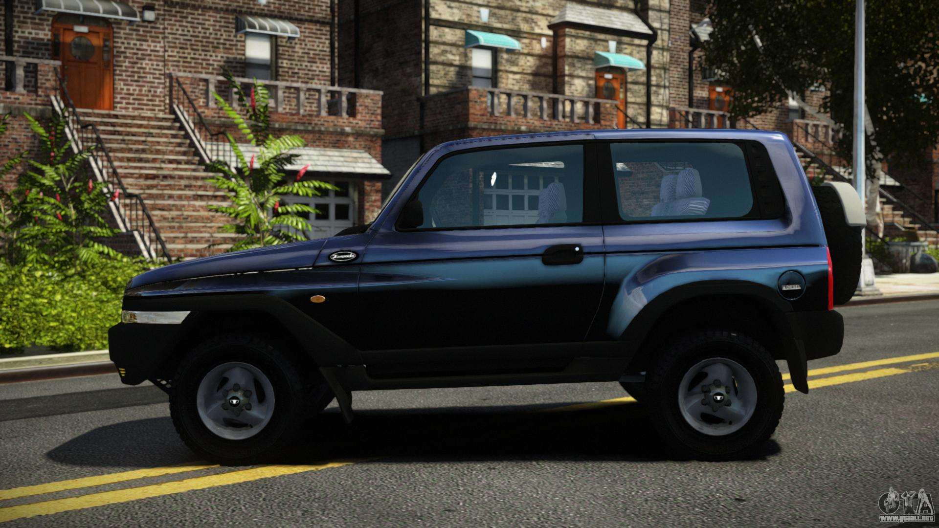 ¡Esto es lo que necesitas! Siga los enlaces a continuación para obtener una descarga gratuita del mod Daewoo Korando Loperhy para GTA 4. La configuración predeterminada es reemplazar Rancher, o con la ayuda del mismo instalador puede reemplazarlo con cualquier transporte estándar.