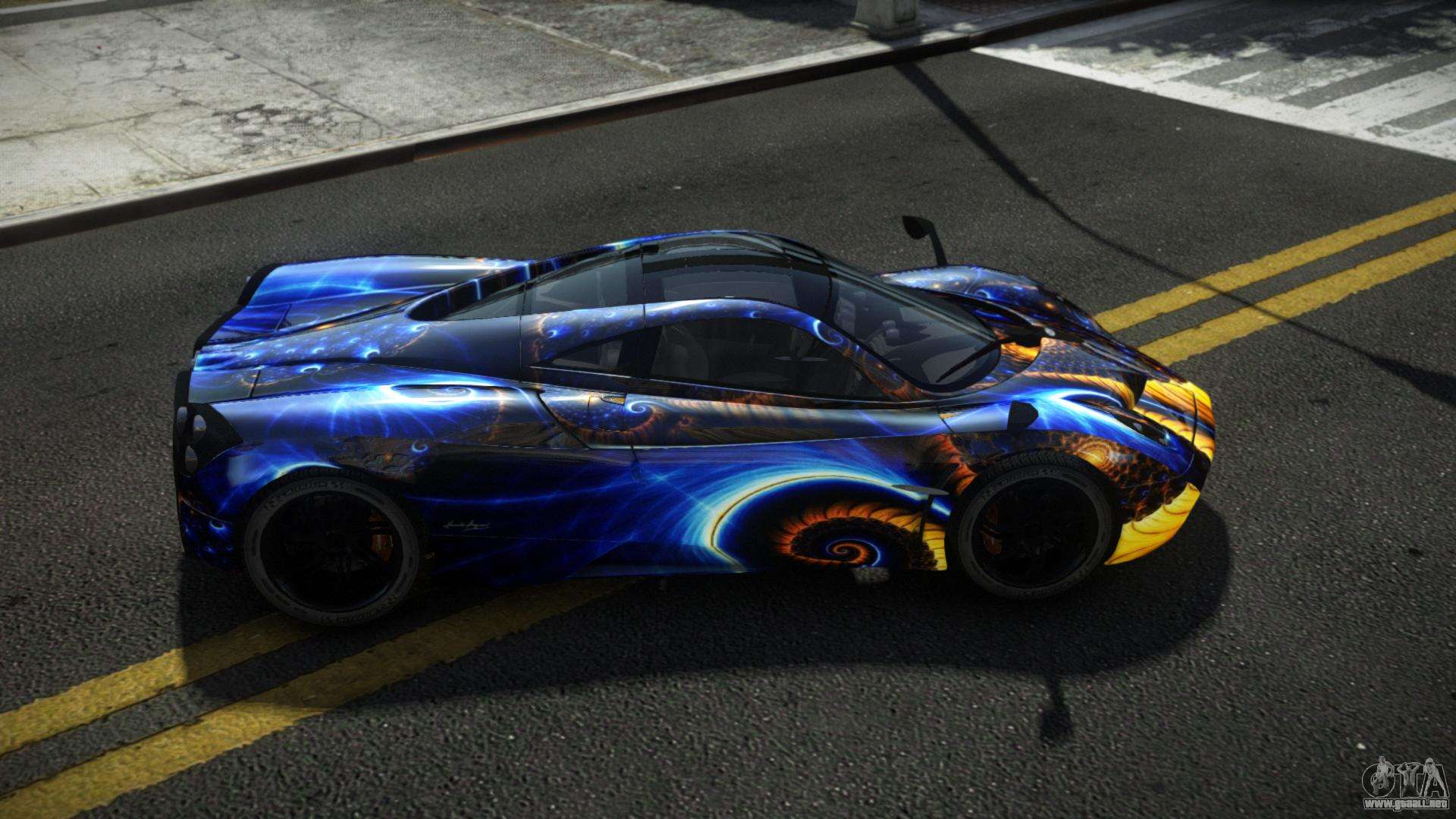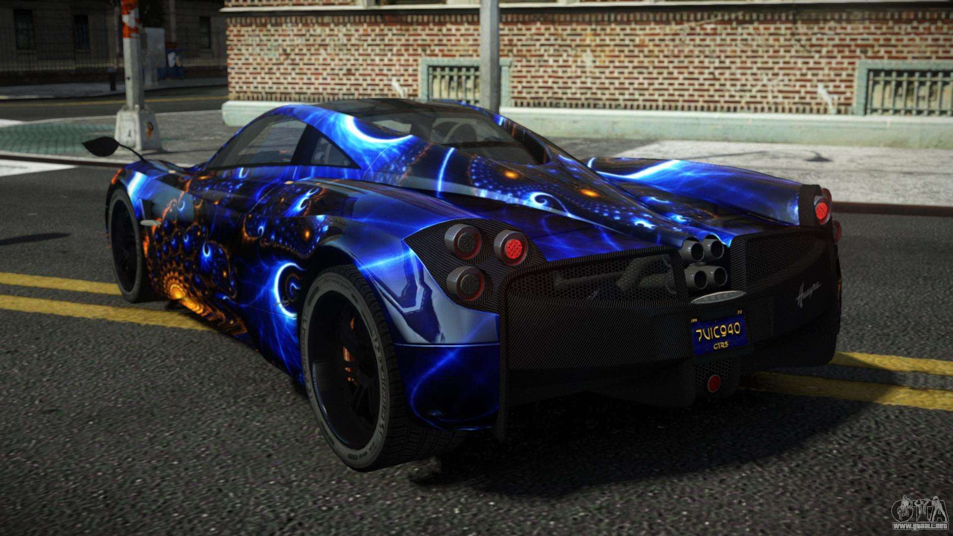 Puedes apreciar todo el encanto del coche descargando el mod Pagani Huayra Frablo S4 para GTA 4 haciendo clic en los enlaces de abajo. El mod se instala automáticamente en dos clics, por defecto sustituye a Feltzer, o elige cualquier otro vehículo del juego que quieras transformar.