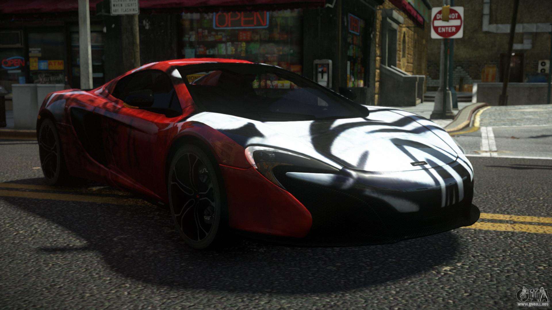 Puedes apreciar todo el encanto del coche descargando el McLaren 650S Ruyloz S12 mod para GTA 4 haciendo clic en los enlaces de abajo. El mod se instala automáticamente en dos clics, por defecto sustituye al Banshee, o elige cualquier otro vehículo del juego que quieras transformar.