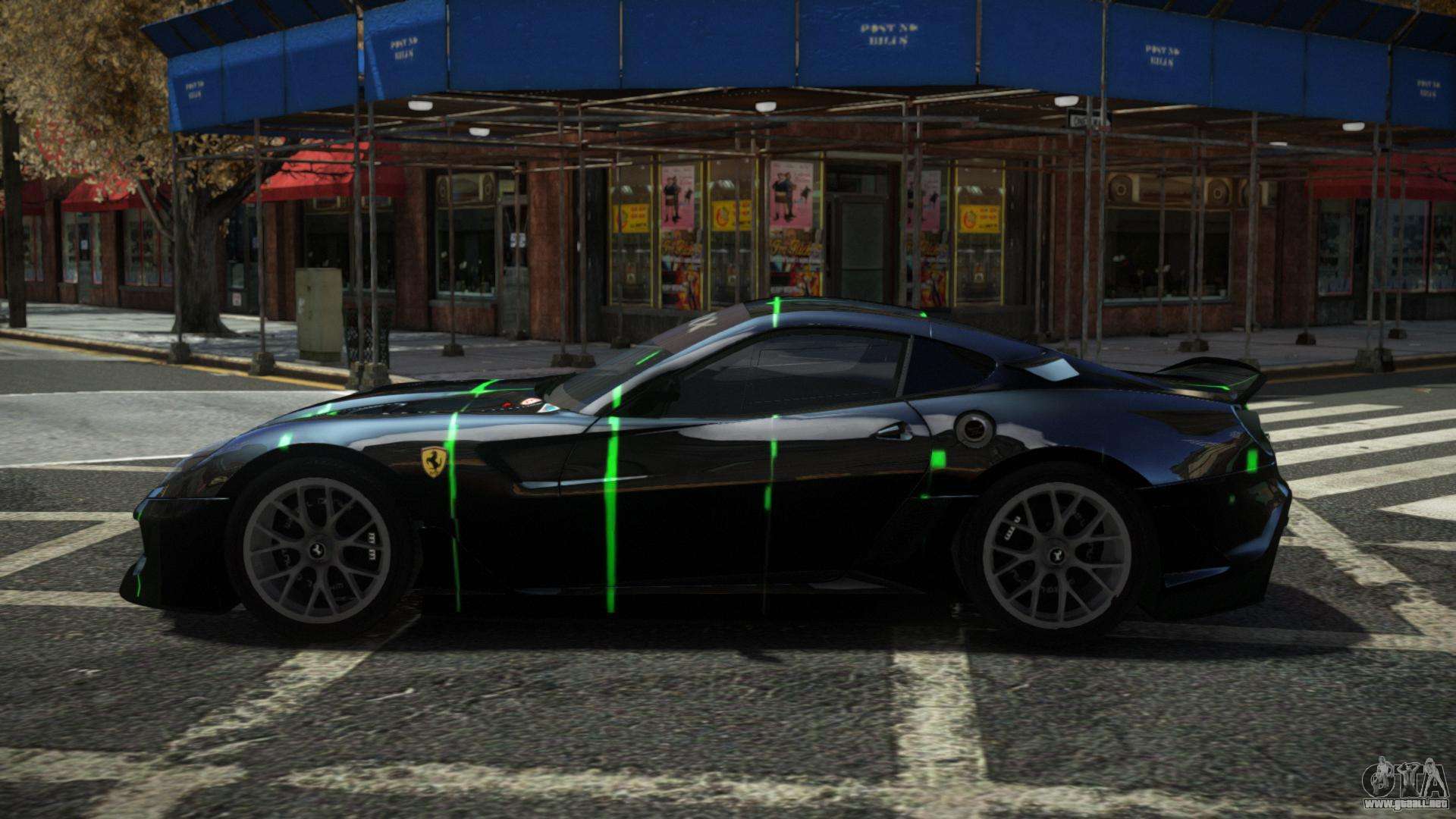 ¡Buen día, amantes de conducir coches bonitos! Dale nueva vida al flujo de tráfico en las carreteras de Liberty City con el Ferrari 599 Votrezay S6 mod para GTA 4. El trabajo de alta calidad del autor te permitirá sentir que conduces un excelente automóvil de una manera nueva.