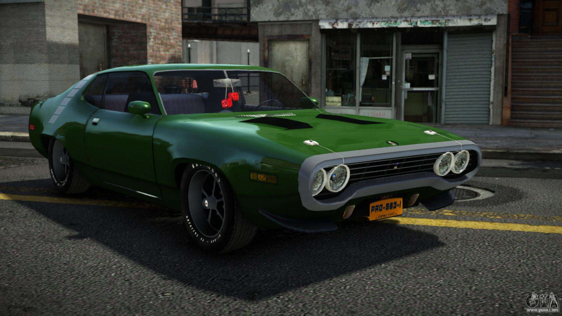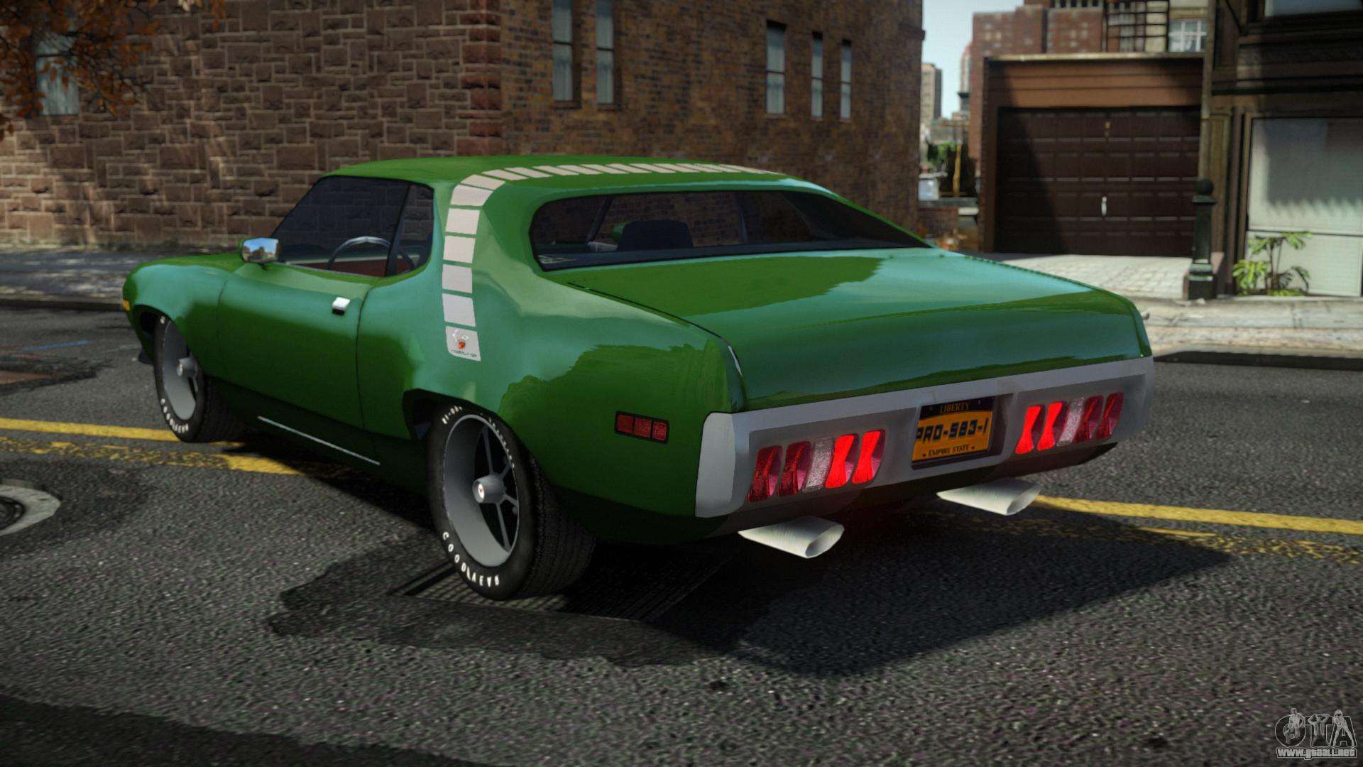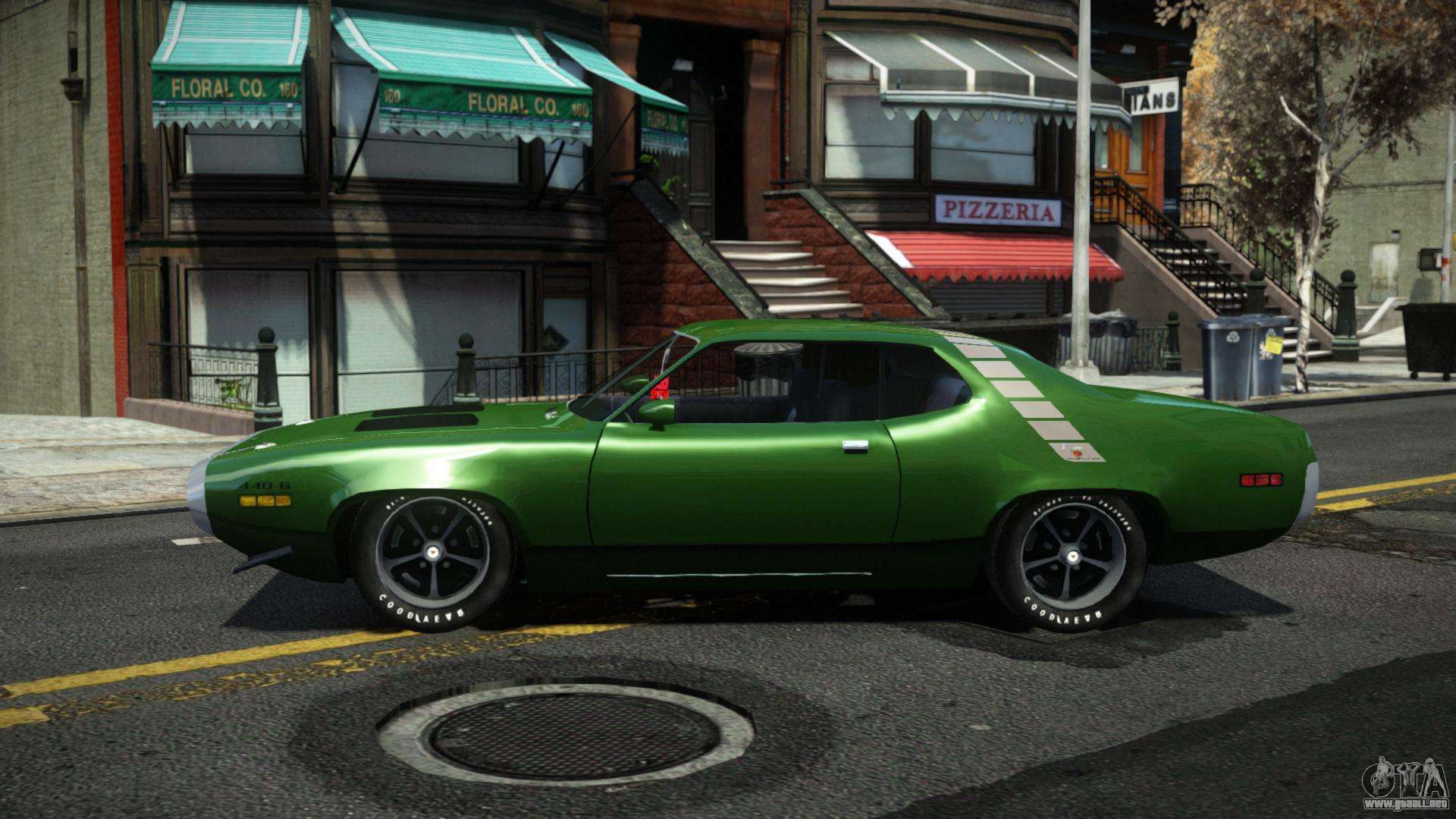 Puede apreciar todo el encanto del automóvil descargando el mod Plymouth Roadrunner Werusg para GTA 4 haciendo clic en los enlaces a continuación. El mod se instala automáticamente en dos clics, por defecto sustituye a Dukes, o elige cualquier otro vehículo del juego que quieras transformar.