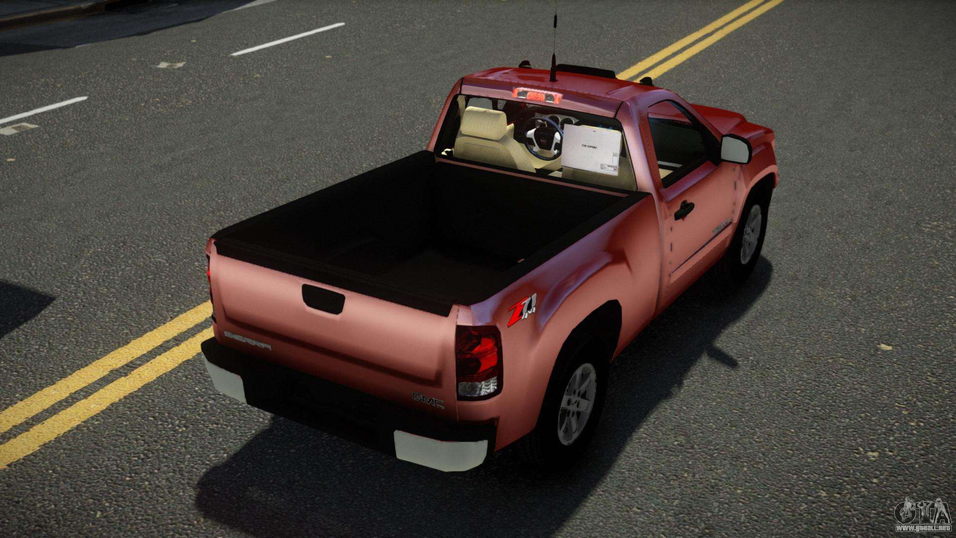 Puedes apreciar todo el encanto del coche descargando el mod GMC Sierra 2012 para GTA 4 haciendo clic en los enlaces de abajo. El mod se instala automáticamente en dos clics, por defecto sustituye al Almirante, o elige cualquier otro vehículo del juego que quieras transformar.