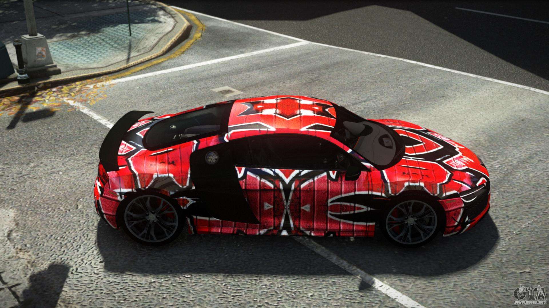 Puede descargar el mod de automóvil Audi R8 Tarington S9 para GTA 4 de forma gratuita haciendo clic en el enlace a continuación. Instalación automática, por defecto para sustituir al Banshee, o con la ayuda del instalador puedes elegir cualquier otro coche estándar del juego.