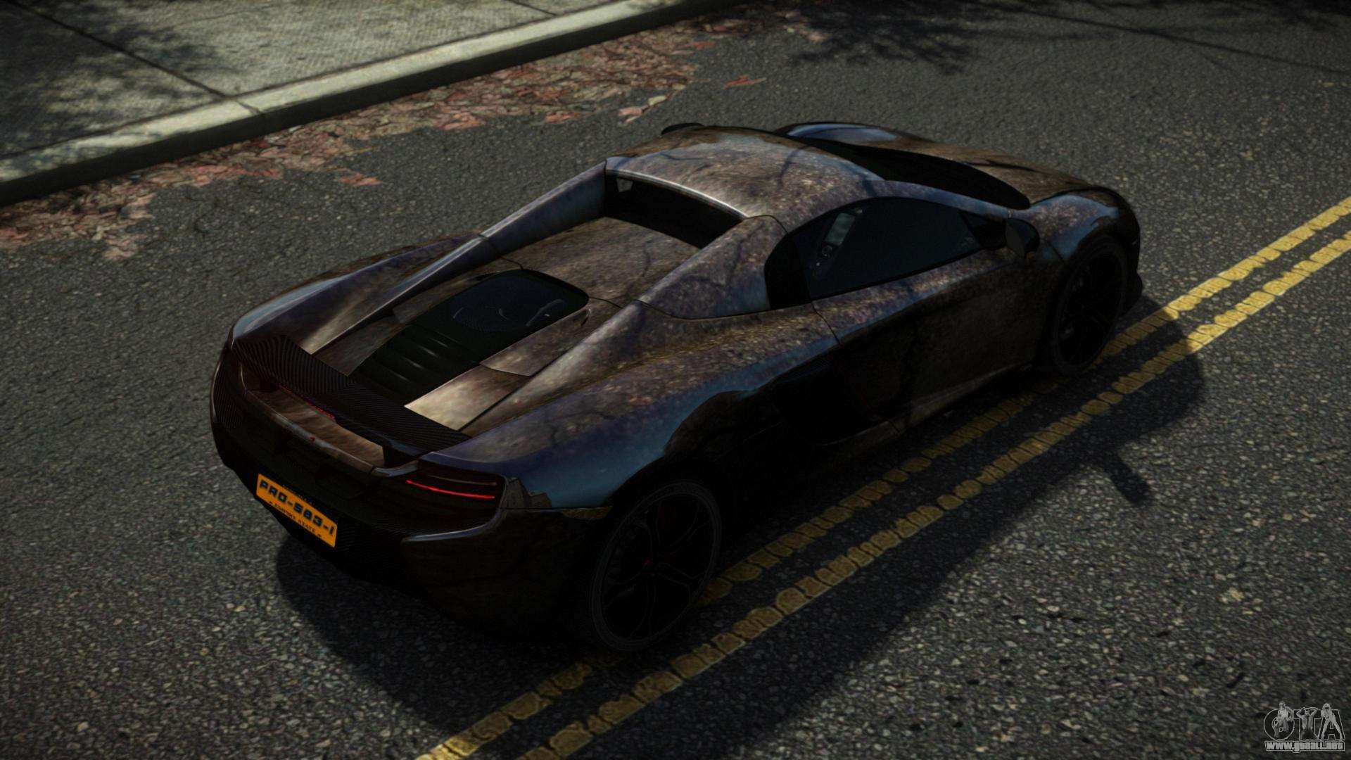 El McLaren 650S Kazorta S11 mod para GTA 4 se puede descargar a continuación en los enlaces. La modificación se instala automáticamente de forma predeterminada para reemplazar el Banshee, y con la ayuda de nuestro instalador también puede reemplazarlo con cualquier vehículo de juego estándar.