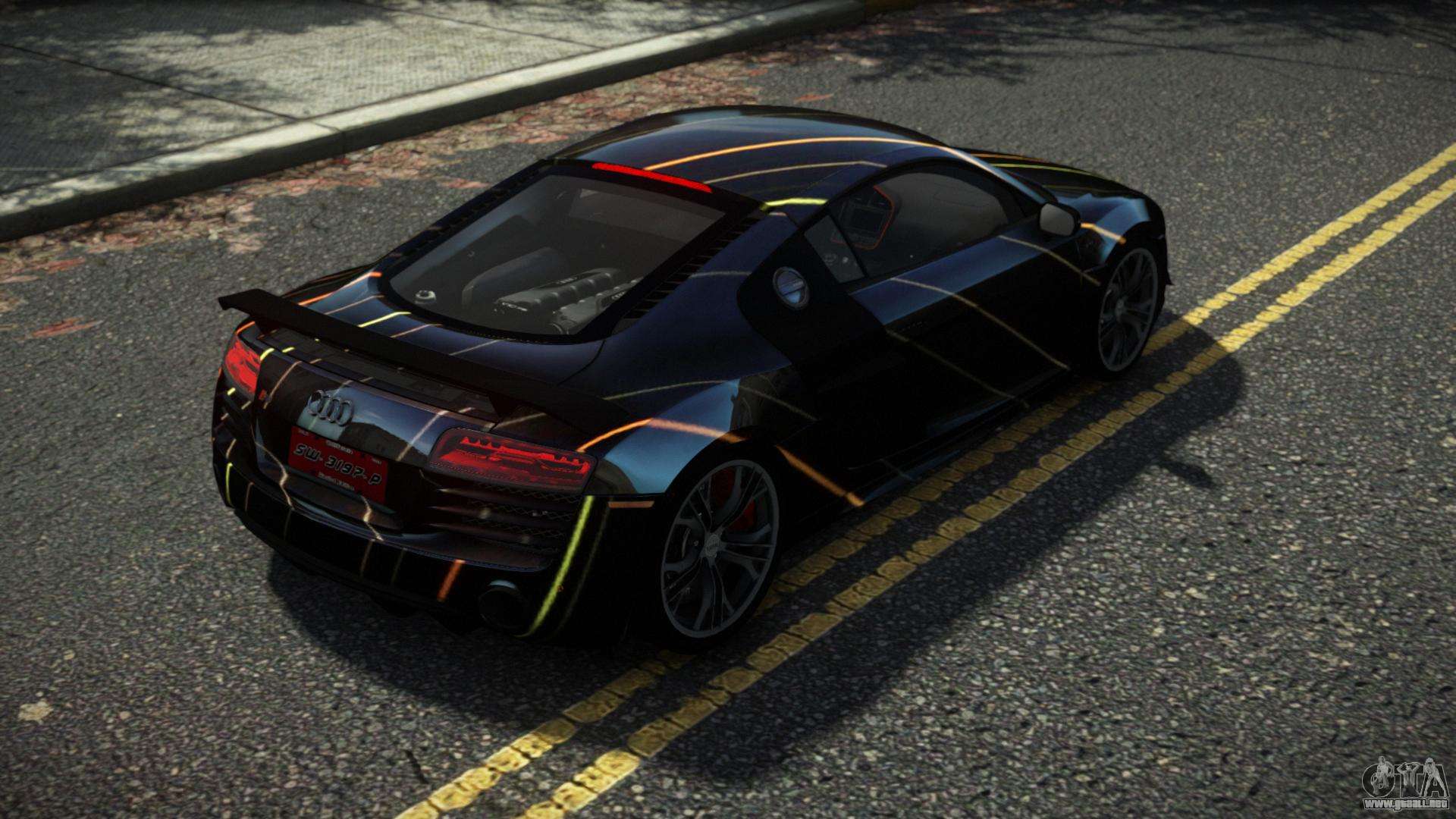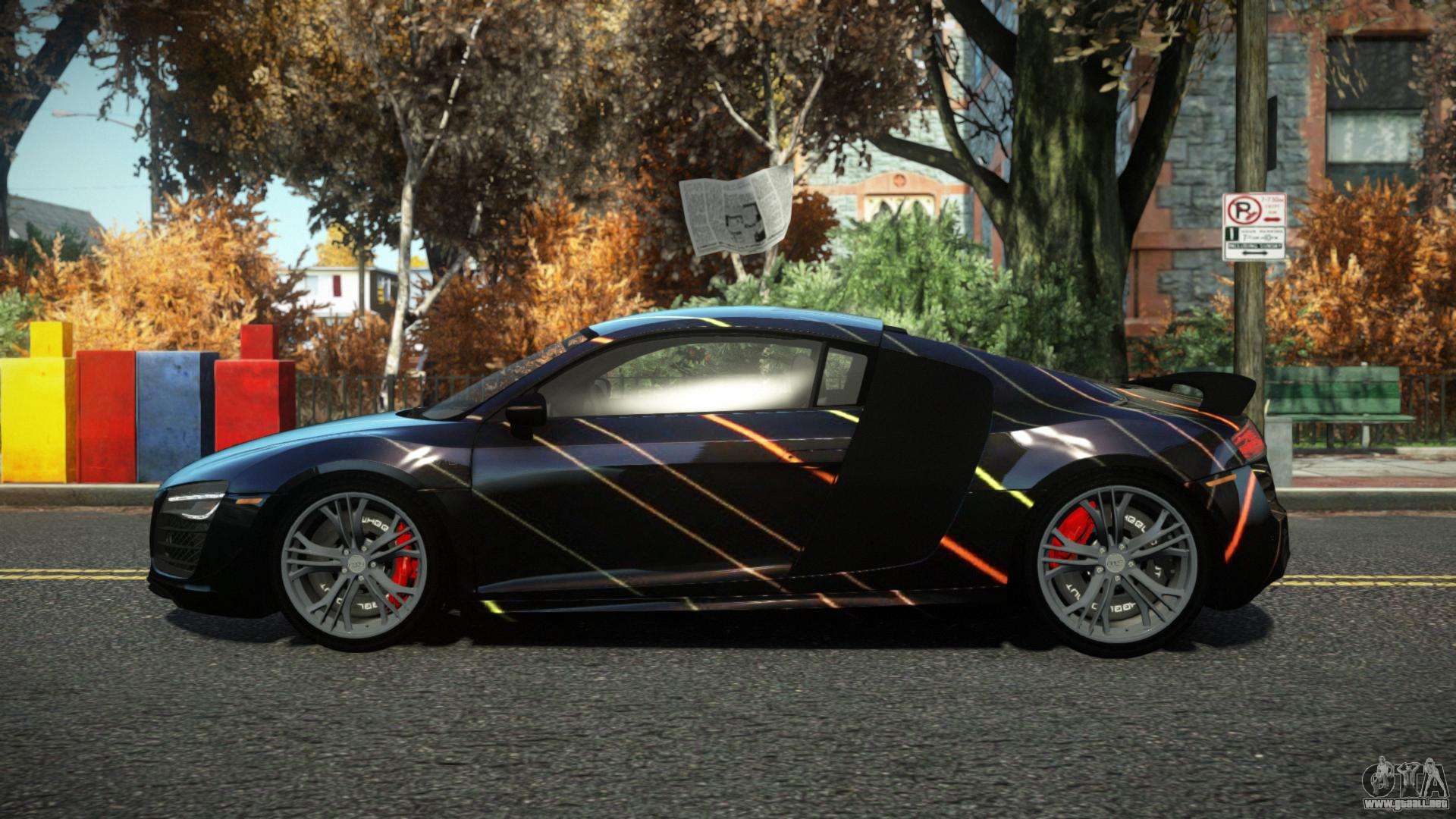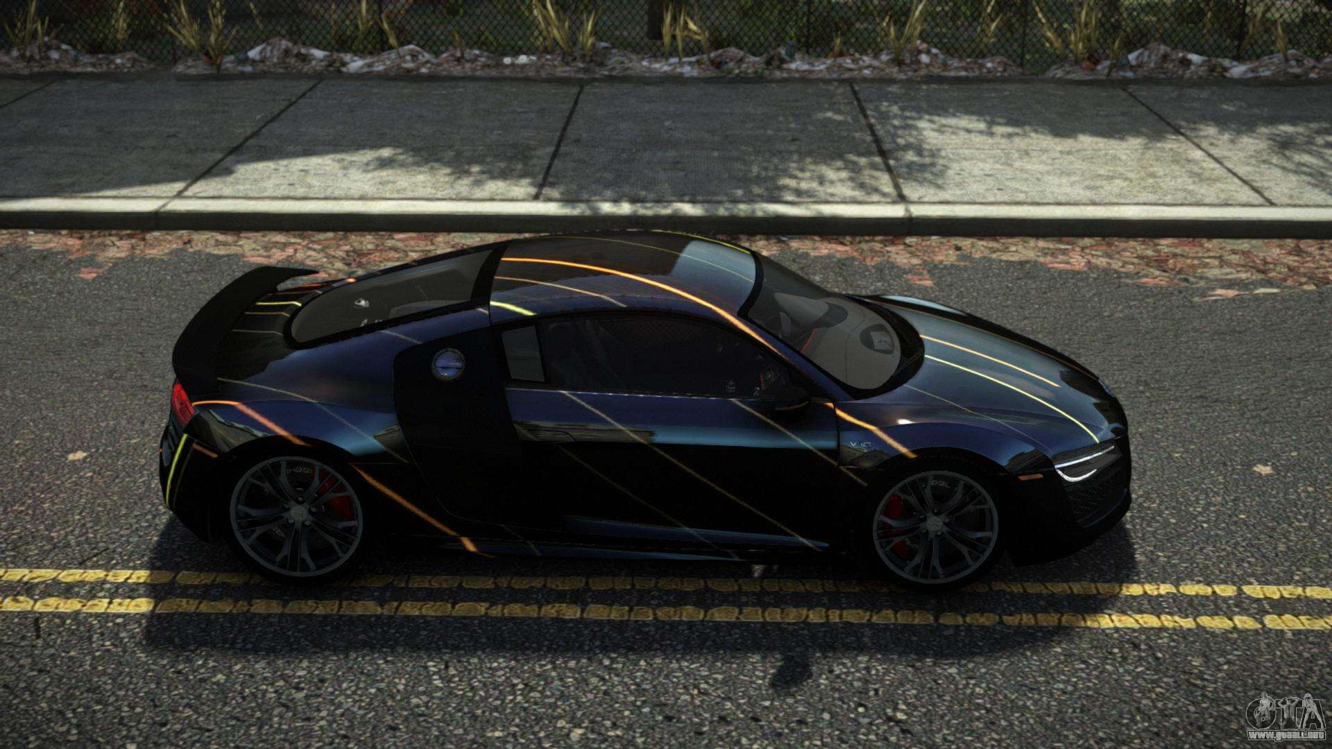 Puede descargar el mod de automóvil Audi R8 Jilomy S13 para GTA 4 de forma gratuita haciendo clic en el enlace a continuación. Instalación automática, por defecto para sustituir al Banshee, o con la ayuda del instalador puedes elegir cualquier otro coche estándar del juego.