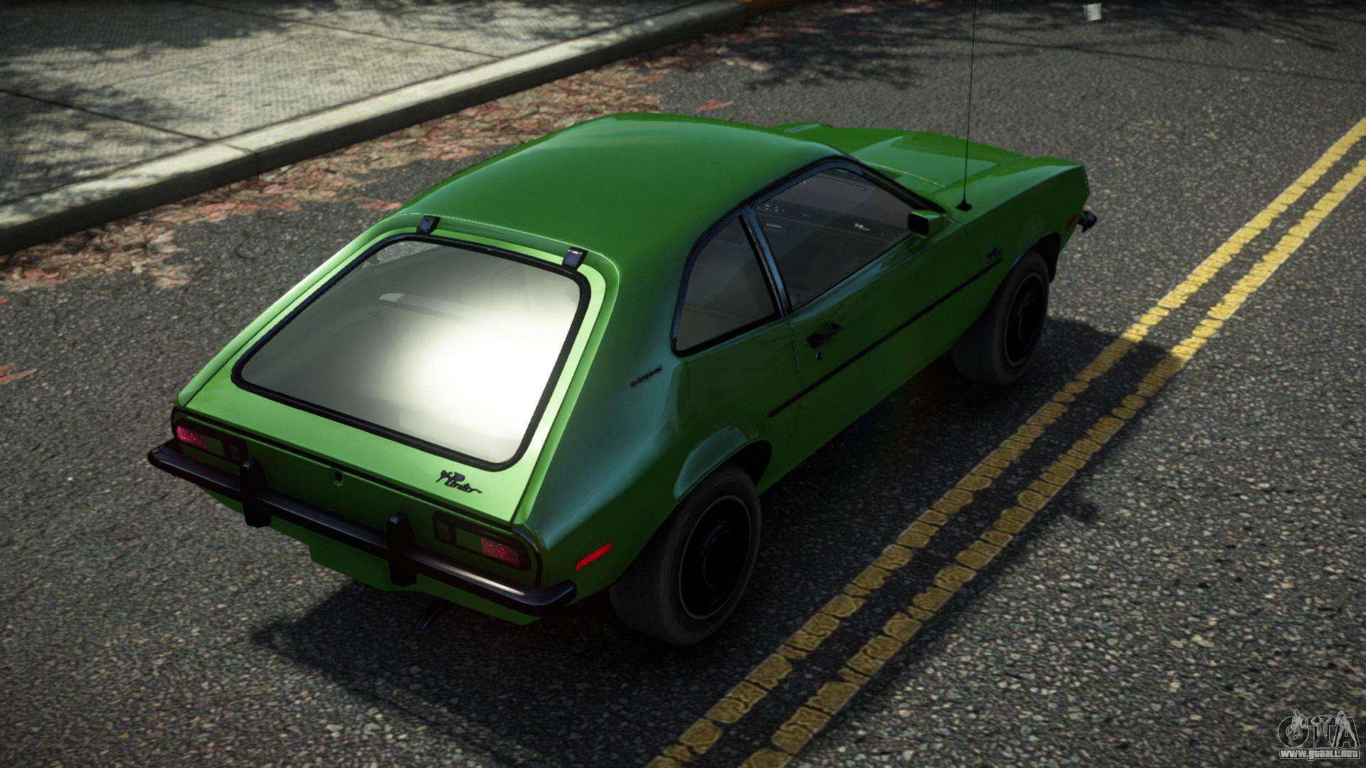 Puede descargar el mod de automóvil Ford Pinto Exrum para GTA 4 de forma gratuita haciendo clic en el enlace a continuación. Instalación automática, de forma predeterminada para reemplazar Faction, o con la ayuda del instalador puede seleccionar cualquier otro automóvil estándar del juego.