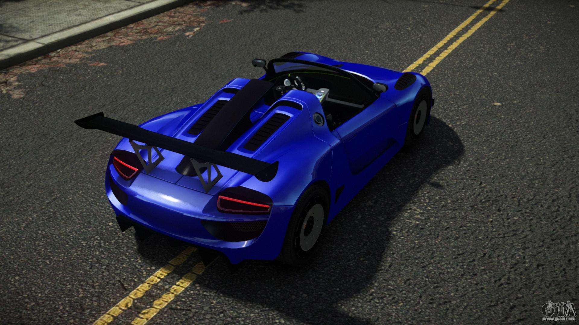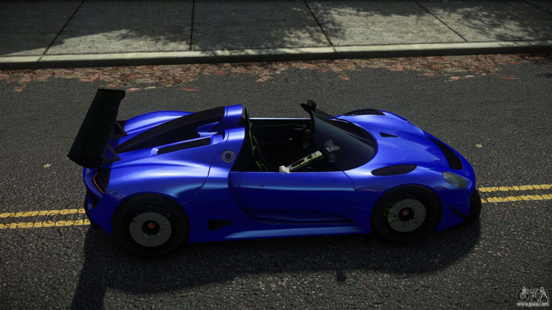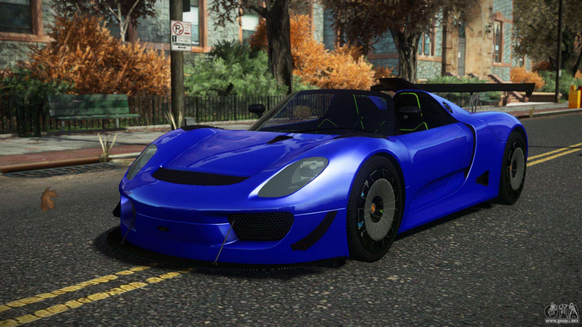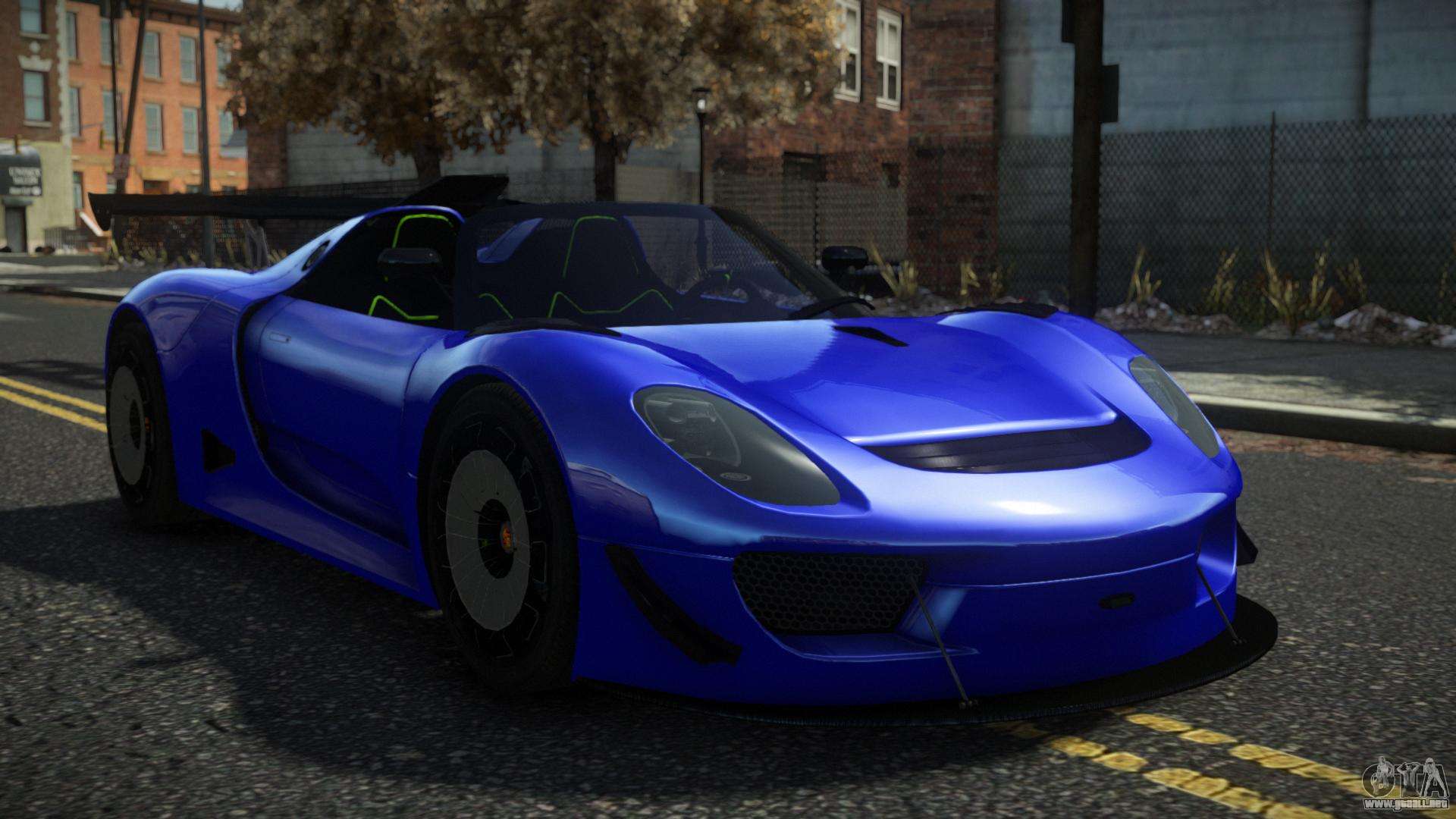 ¡Esto es lo que necesitas! Siga los enlaces a continuación para descargar gratis el mod Porsche 918 Fertylio para GTA 4. La configuración predeterminada es reemplazar Turismo, o con la ayuda del mismo instalador puede reemplazarlo con cualquier transporte estándar.