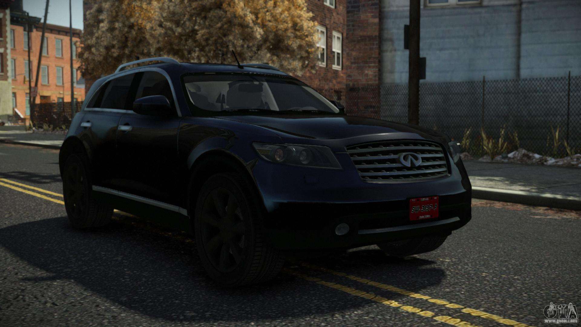 Usando los enlaces a continuación, puede descargar el mod de automóvil Infiniti FX45 Rekud para GTA 4 de forma gratuita. De forma predeterminada, el mod reemplaza automáticamente el automóvil con un Cavalcade. Con la ayuda de nuestro instalador, puede reemplazar el automóvil por otro vehículo estándar.