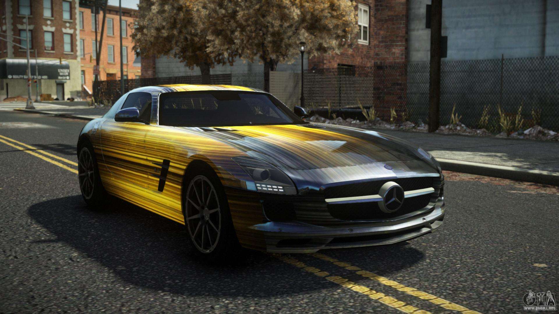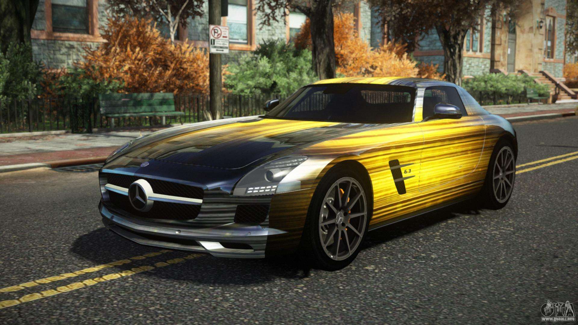 ¡Buen día, amantes de conducir coches bonitos! Dale nueva vida al flujo de tráfico en las carreteras de Liberty City con el mod de coche Mercedes-Benz SLS AMG Garno S6 para GTA 4. El trabajo de alta calidad del autor te permitirá sentir que conduces un excelente automóvil de una manera nueva.