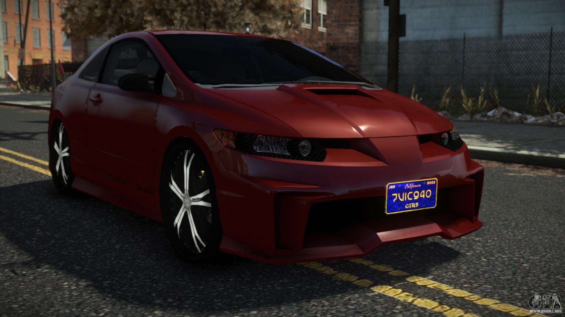 El mod Honda Civic Rismu para GTA 4 se puede descargar a continuación en los enlaces. La modificación se instala automáticamente de forma predeterminada para reemplazar Faction, y con la ayuda de nuestro instalador, también puede reemplazarla con cualquier vehículo de juego estándar.