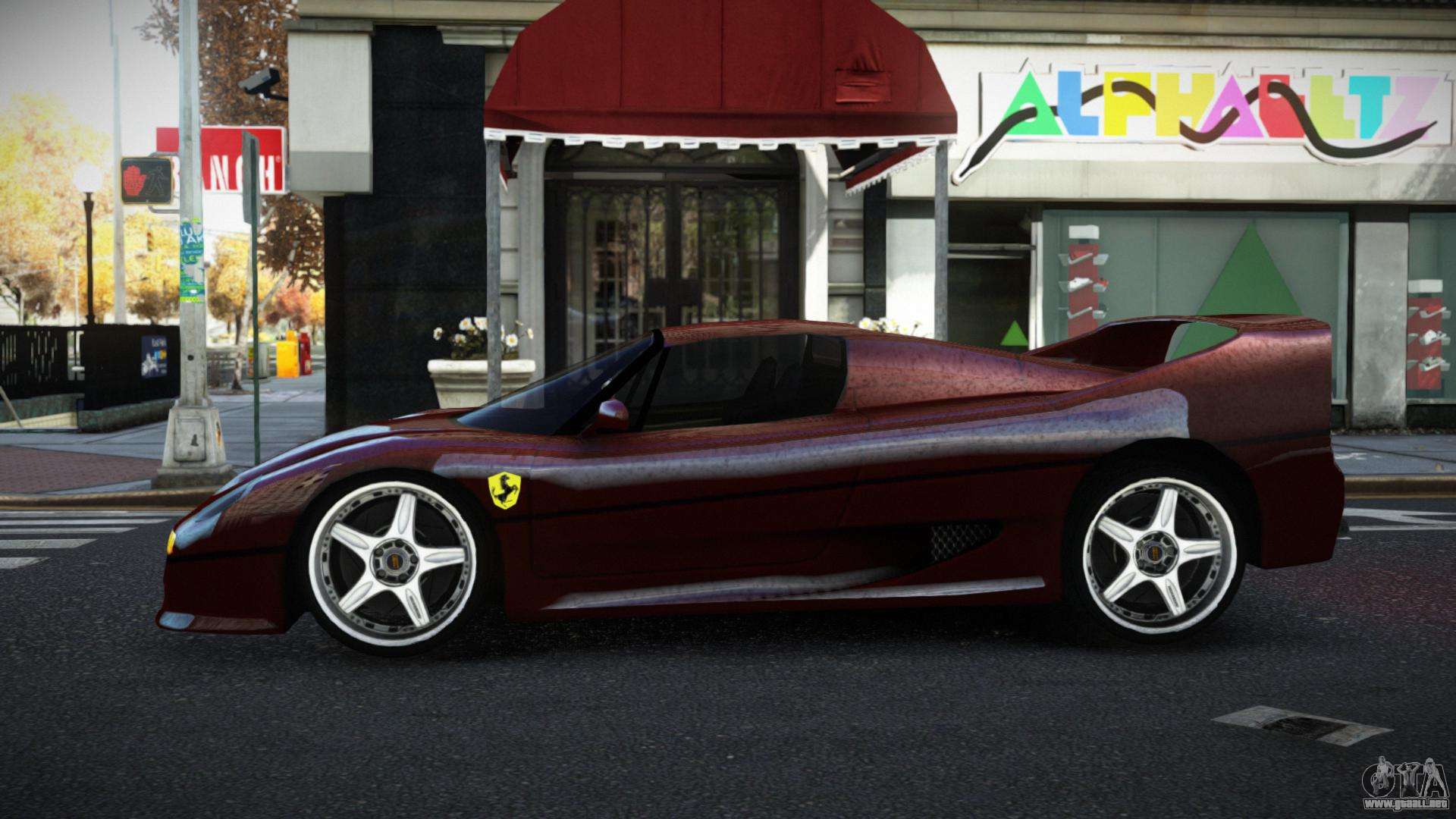 No te niegues el placer, sigue los enlaces a continuación y descarga el mod Ferrari F50 Fartuz para GTA 4. La instalación automática en dos clics, reemplazará a Turismo por defecto. Y también, gracias a nuestro instalador, puedes elegir qué coche de juego estándar quieres mejorar.