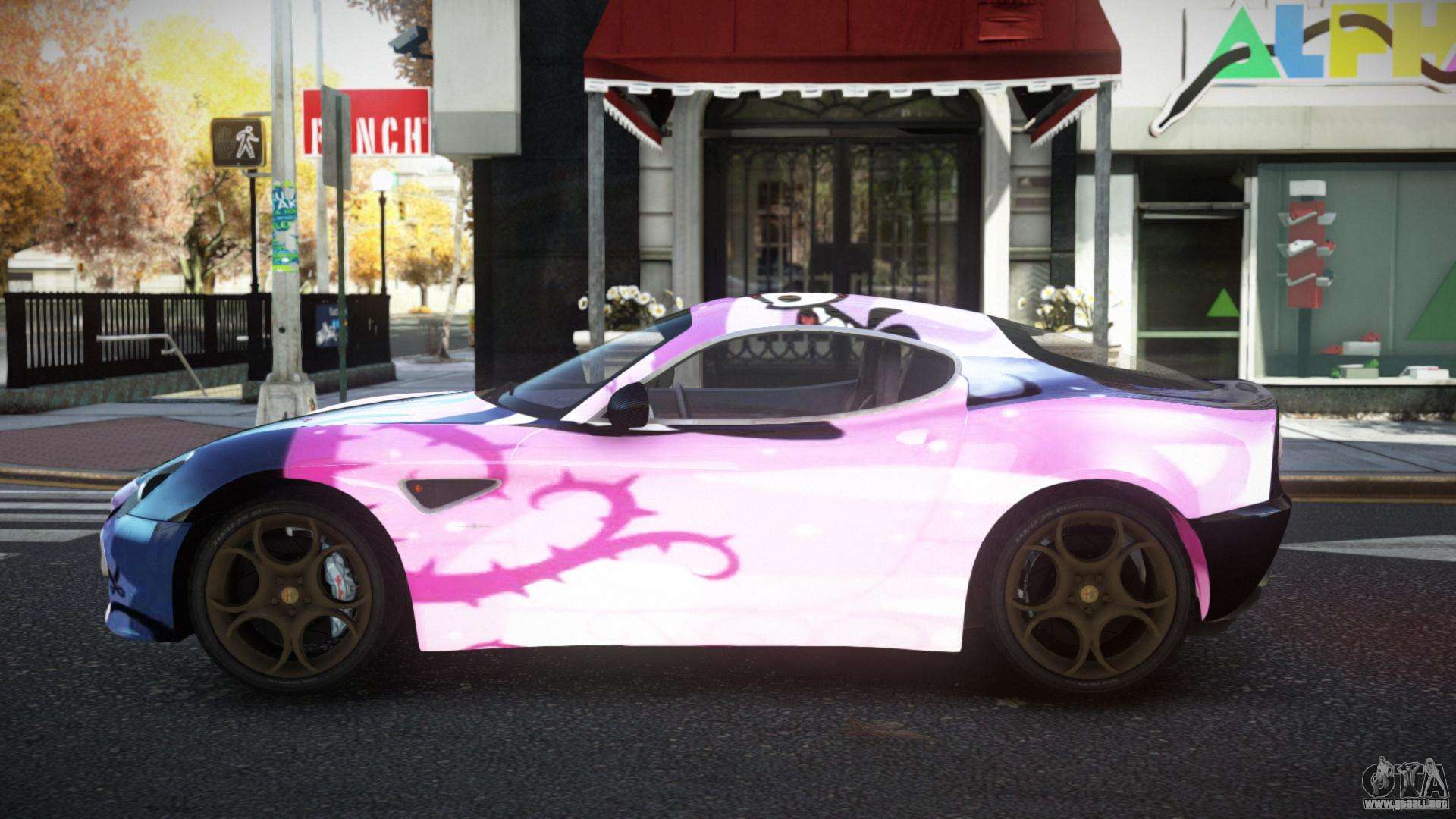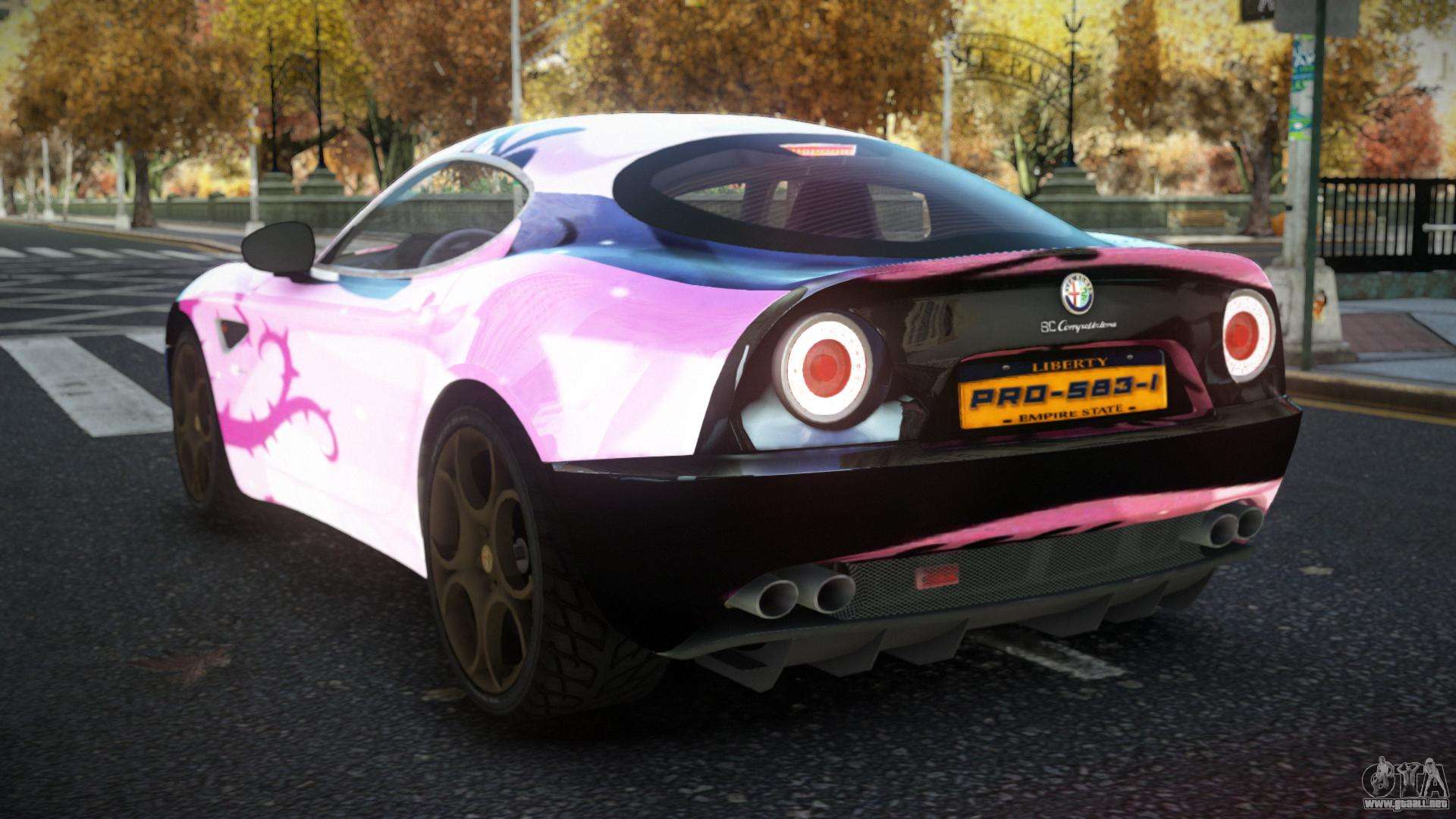 El mod Alfa Romeo 8C DFL S11 para GTA 4 se puede descargar a continuación en los enlaces. La modificación se instala automáticamente de forma predeterminada para reemplazar el Banshee, y con la ayuda de nuestro instalador también puede reemplazarlo con cualquier vehículo de juego estándar.