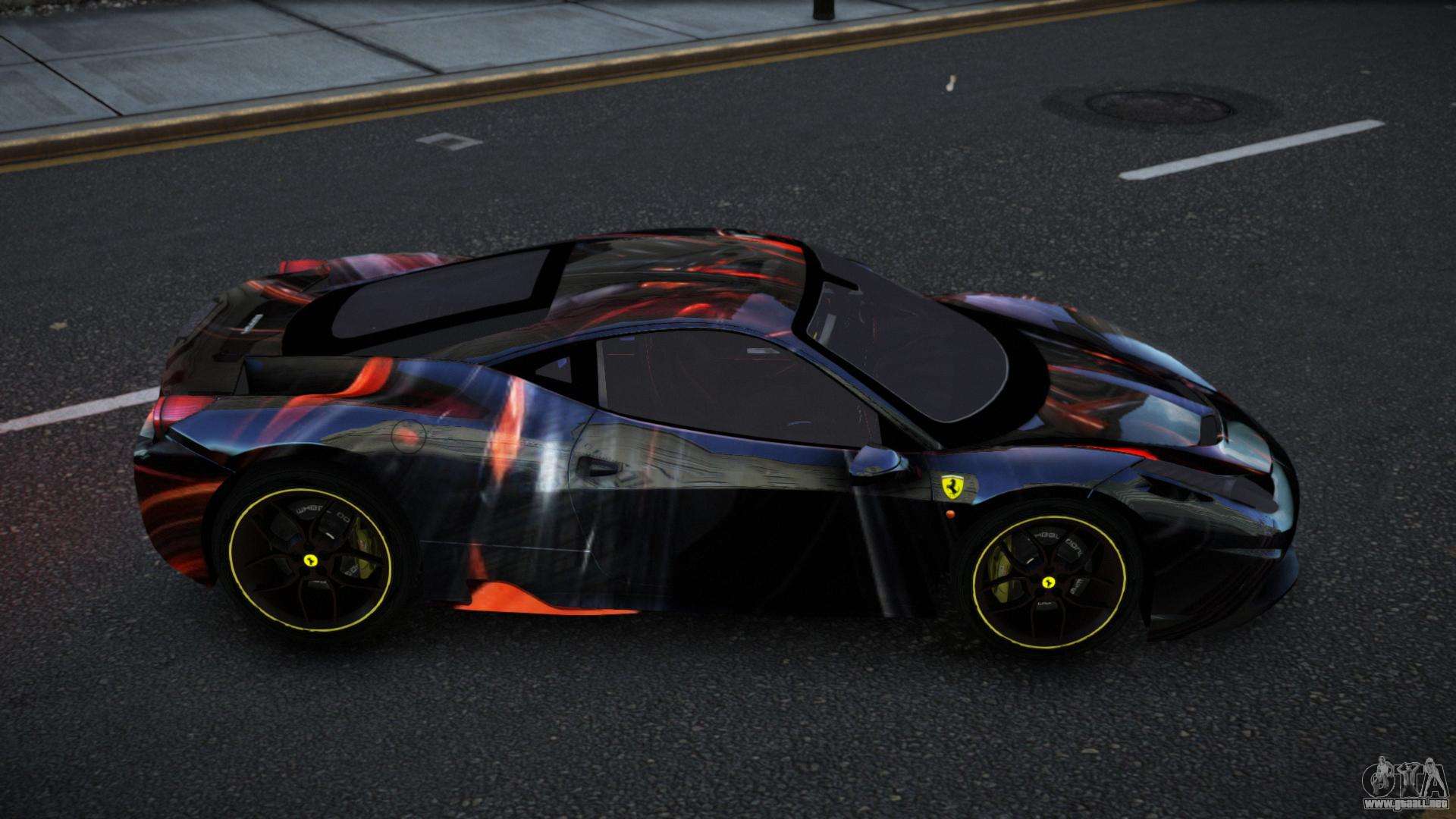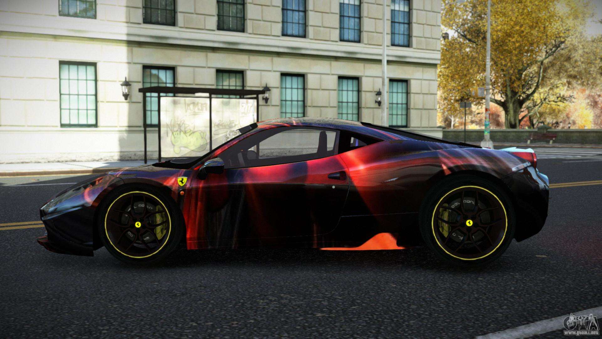 Puedes descargar el mod de coche Ferrari 458 Jalia S9 para GTA 4 de forma gratuita haciendo clic en el siguiente enlace. Instalación automática, por defecto para sustituir al Banshee, o con la ayuda del instalador puedes elegir cualquier otro coche estándar del juego.