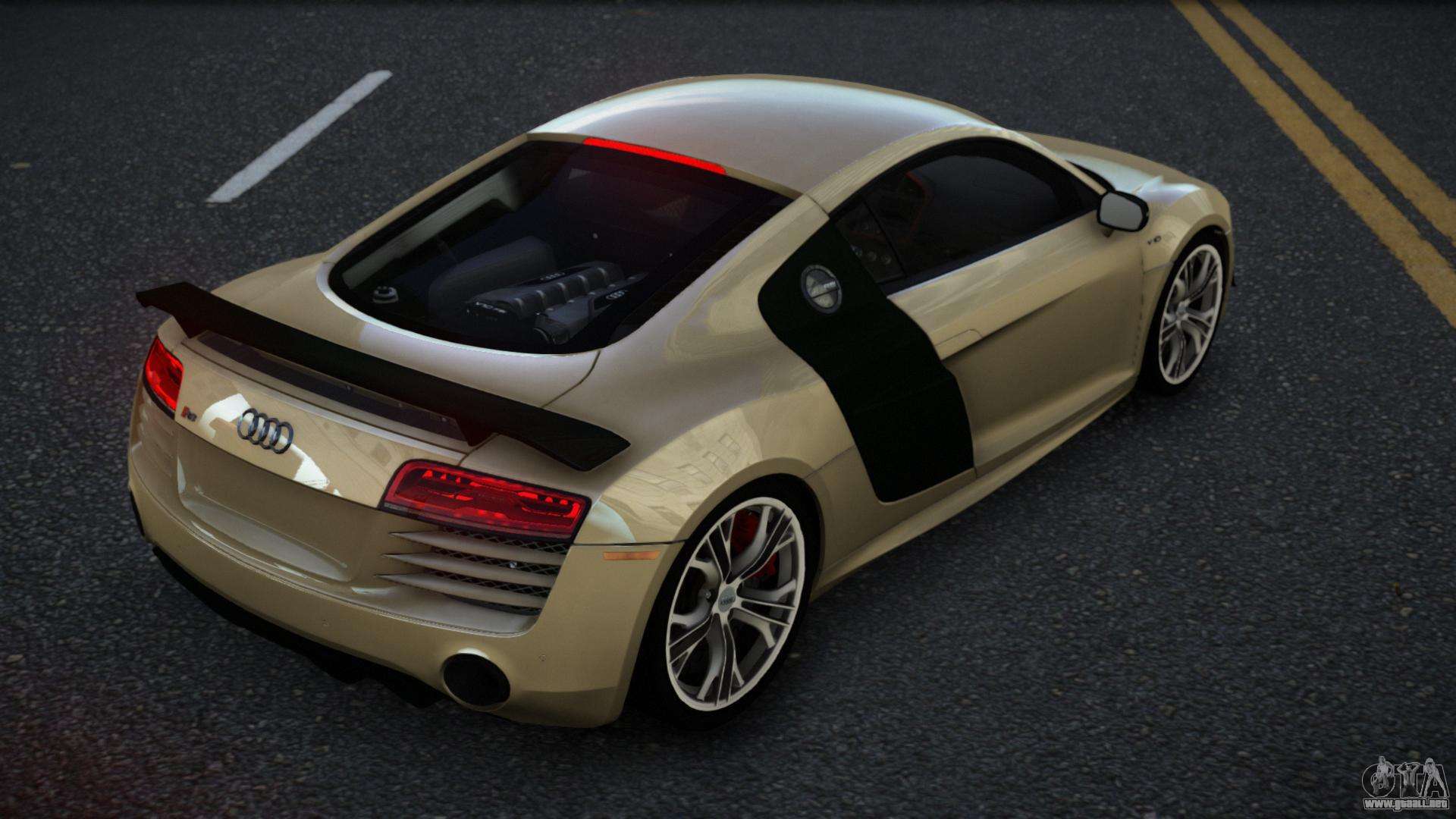 Puede descargar el mod de automóvil Audi R8 Sonerle para GTA 4 de forma gratuita haciendo clic en el enlace a continuación. Instalación automática, por defecto para sustituir al Banshee, o con la ayuda del instalador puedes elegir cualquier otro coche estándar del juego.