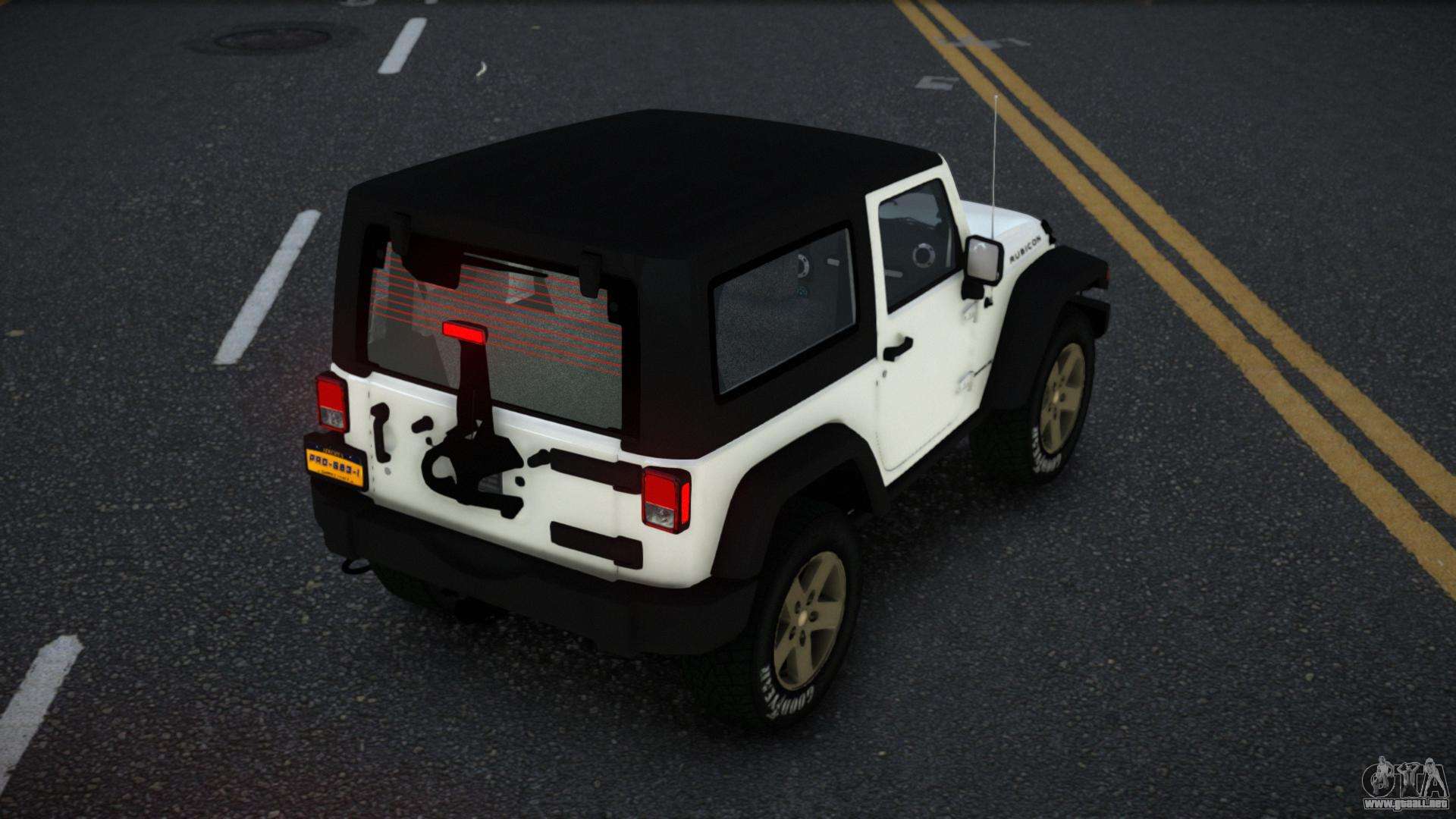 El mod Jeep Wrangler Defxufe para GTA 4 se puede descargar a continuación en los enlaces. La modificación se instala automáticamente de forma predeterminada para reemplazar Rebla, y con la ayuda de nuestro instalador, puede reemplazarlo con cualquier vehículo de juego estándar.