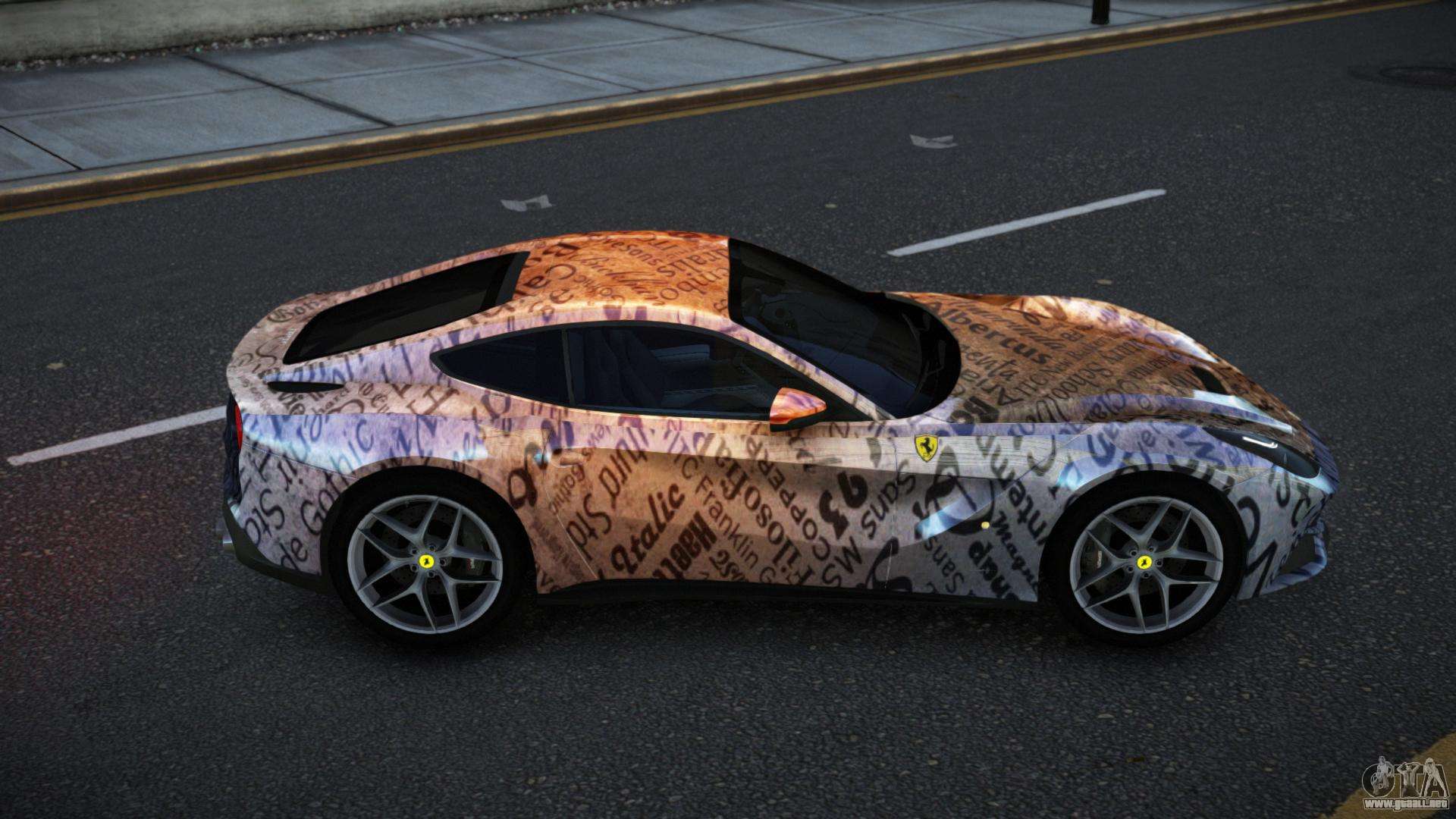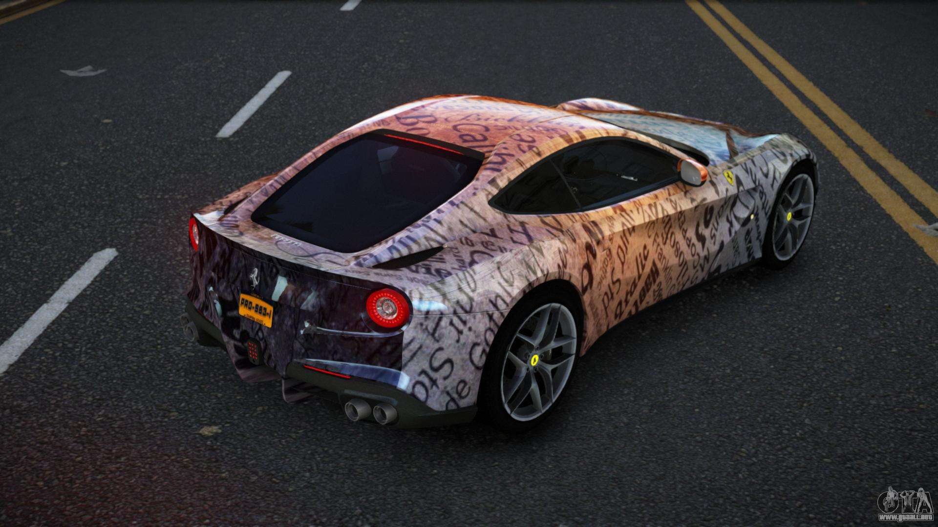 Puedes apreciar todo el encanto del coche descargando el mod Ferrari F12 Exsaca S2 para GTA 4 haciendo clic en los enlaces de abajo. El mod se instala automáticamente en dos clics, por defecto sustituye al Banshee, o elige cualquier otro vehículo del juego que quieras transformar.