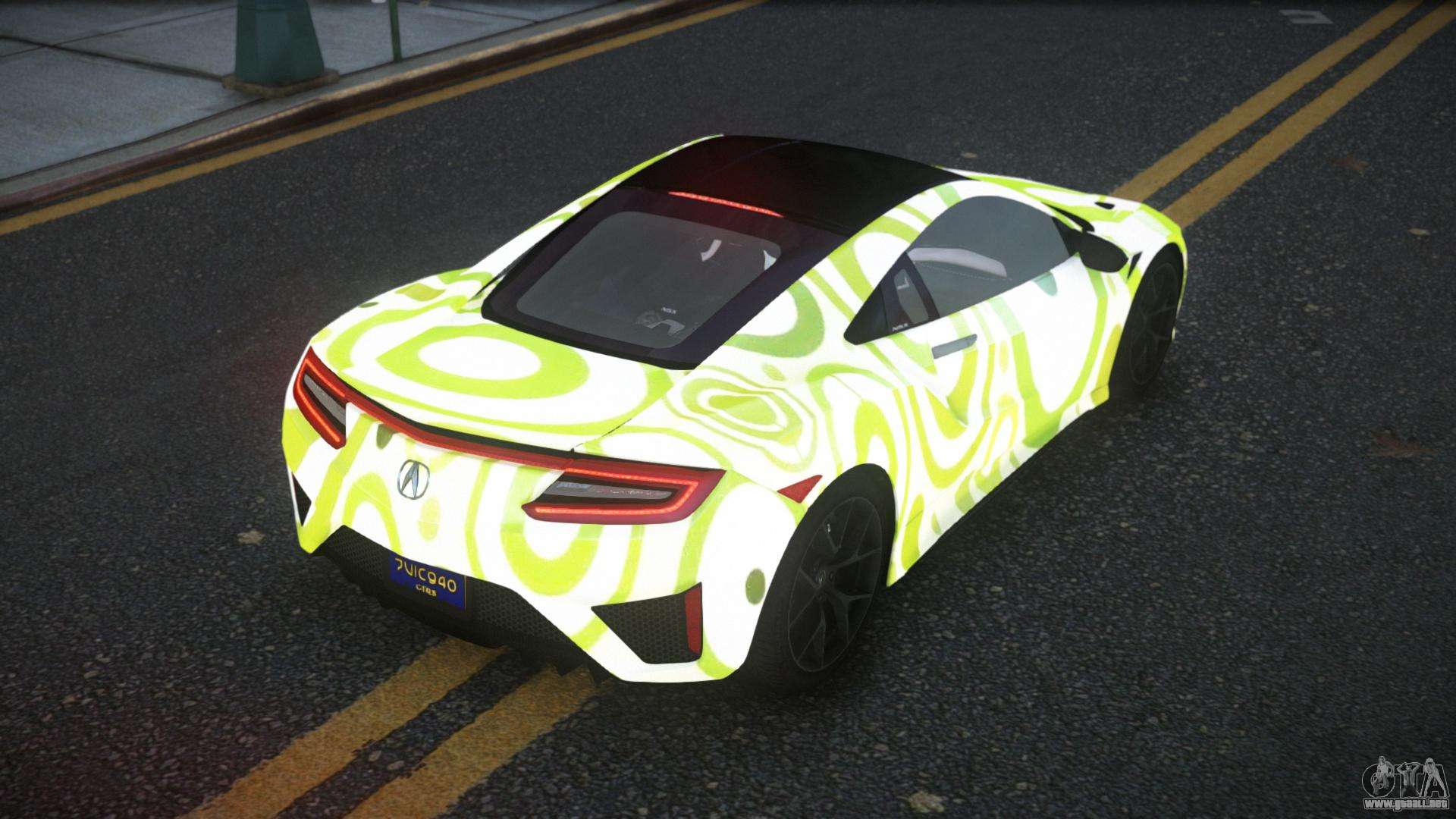 El mod Acura NSX Lamiclos S3 para GTA 4 se puede descargar a continuación en los enlaces. La modificación se instala automáticamente de forma predeterminada para reemplazar el Banshee, y con la ayuda de nuestro instalador también puede reemplazarlo con cualquier vehículo de juego estándar.