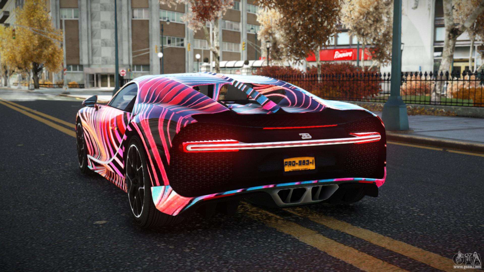 Puedes apreciar todo el encanto del coche descargando el mod Bugatti Chiron Kelian S12 para GTA 4 haciendo clic en los enlaces de abajo. El mod se instala automáticamente en dos clics, por defecto sustituye al Banshee, o elige cualquier otro vehículo del juego que quieras transformar.