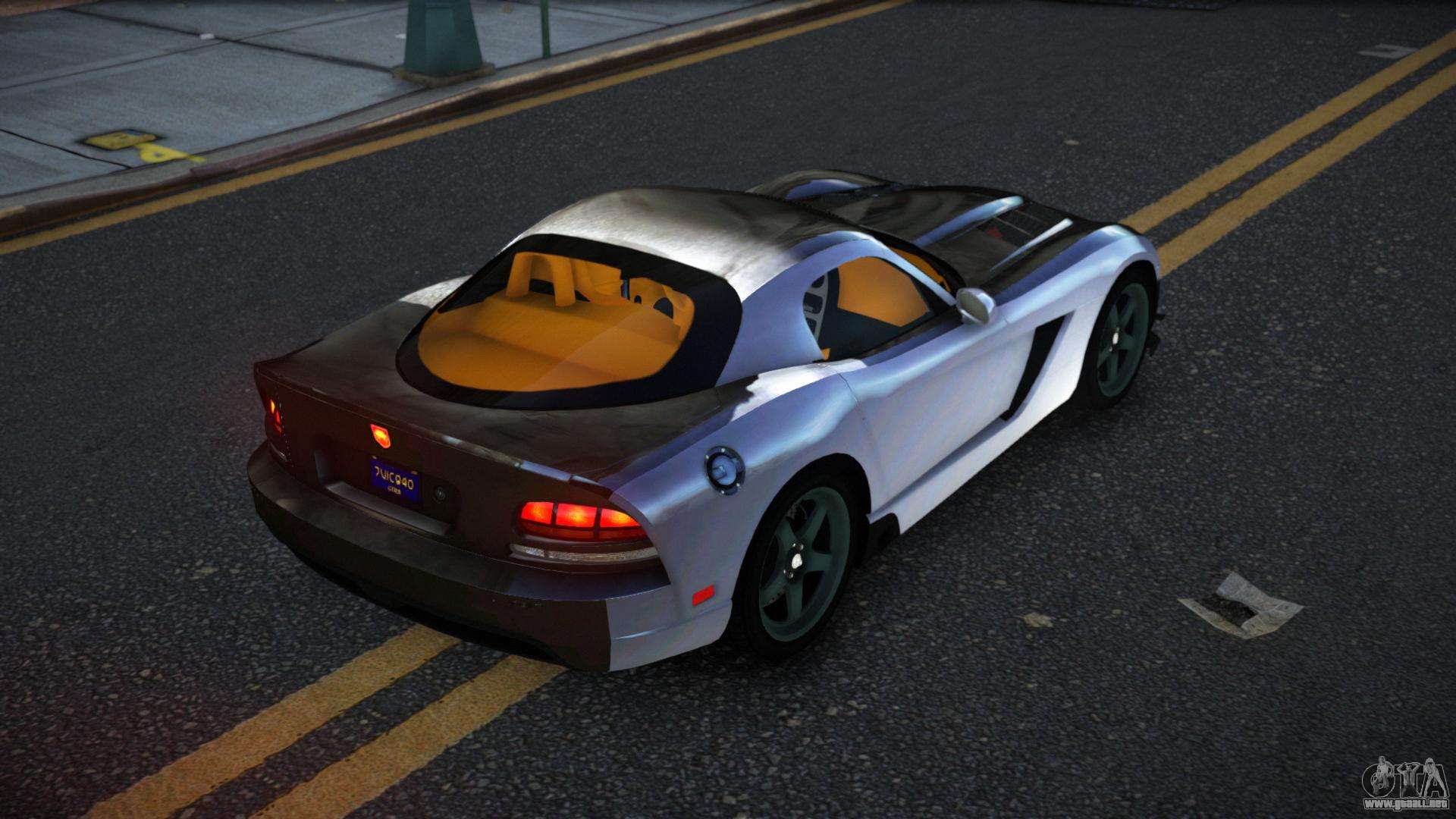 Puede descargar Dodge Viper Dajesen S5 car mod para GTA 4 de forma gratuita haciendo clic en el enlace a continuación. Instalación automática, por defecto para reemplazar el Banshee, o con la ayuda del instalador puedes elegir cualquier otro coche estándar del juego.