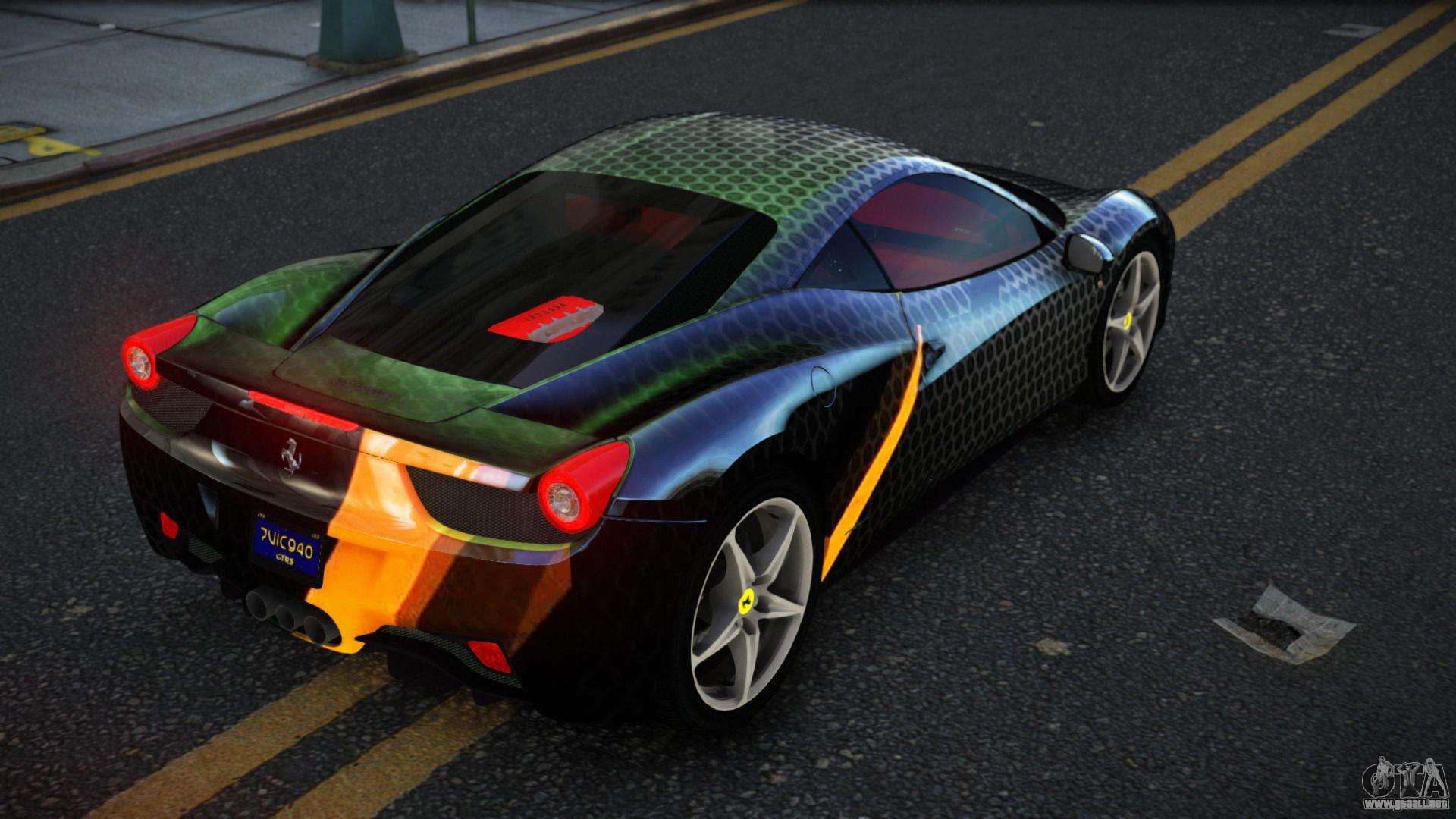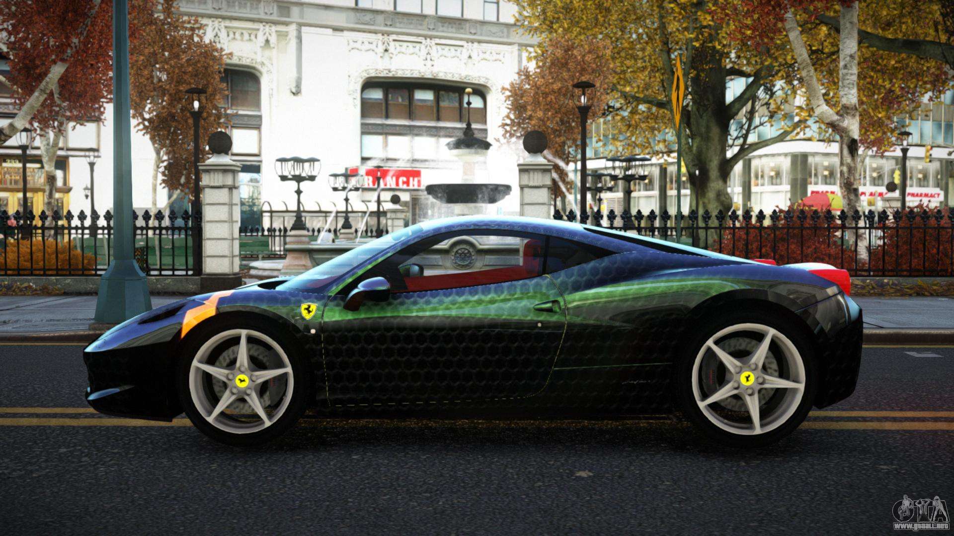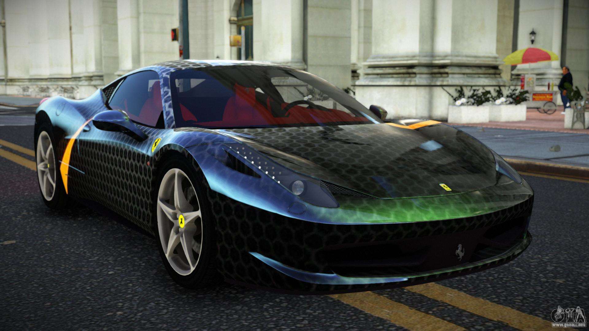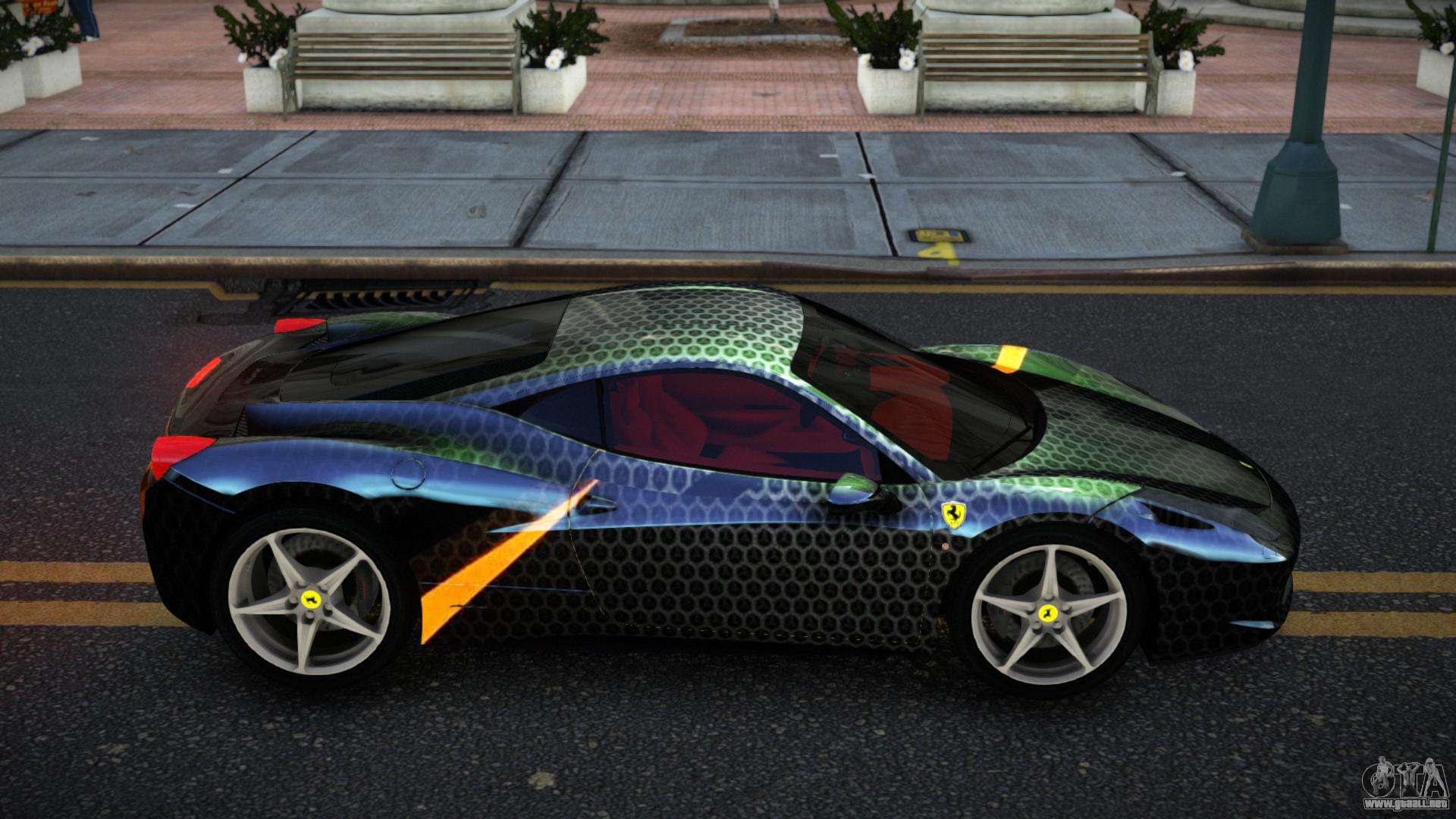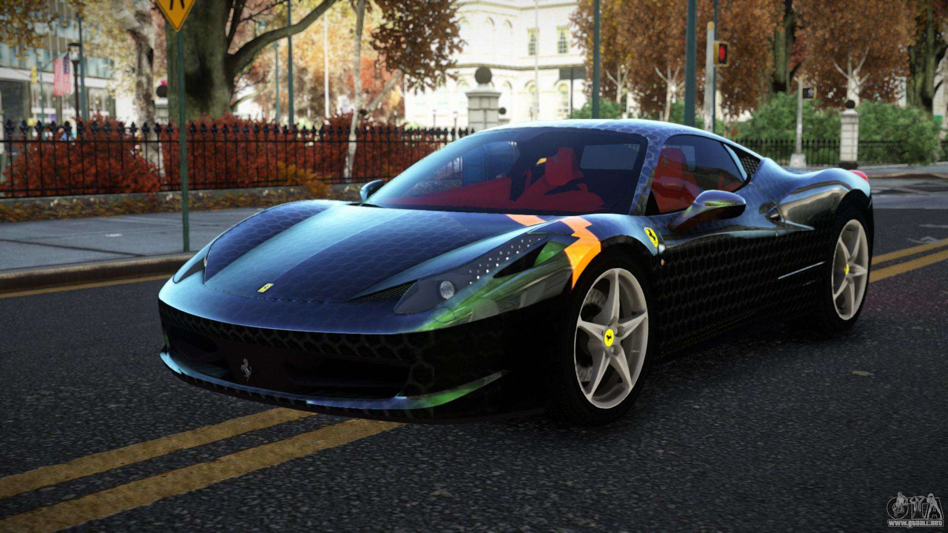 Para descargar el mod de coche Ferrari 458 Hayan S7 para GTA 4 de forma gratuita, solo necesita hacer clic en los enlaces en la parte inferior de la página. Nuestro instalador automatizado te ayudará a instalar el mod de reemplazo de Feltzer con dos clics, o puedes elegir cualquier otro vehículo estándar en el juego.