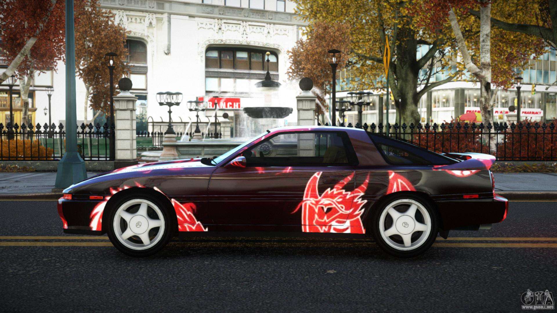 ¡Esto es lo que necesitas! Siga los enlaces a continuación para descargar el mod Toyota Supra Vinbeth S6 para GTA 4 de forma gratuita. La configuración predeterminada es reemplazar Feltzer, o con la ayuda del mismo instalador, puede reemplazarlo con cualquier transporte estándar.