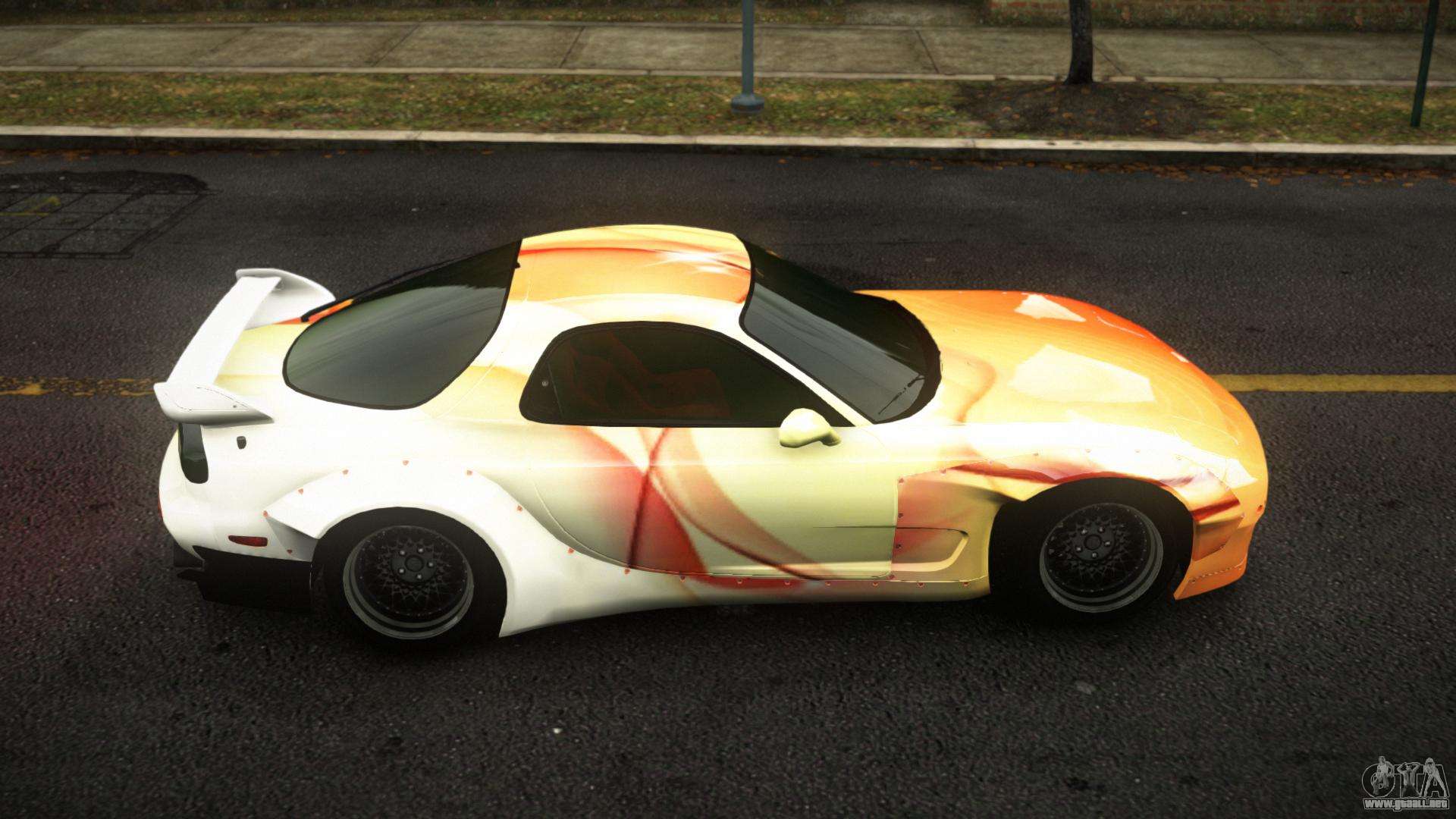 Puedes apreciar todo el encanto del coche descargando el mod Mazda RX-7 Ridomin S2 para GTA 4 haciendo clic en los enlaces de abajo. El mod se instala automáticamente en dos clics, por defecto sustituye al Banshee, o elige cualquier otro vehículo del juego que quieras transformar.