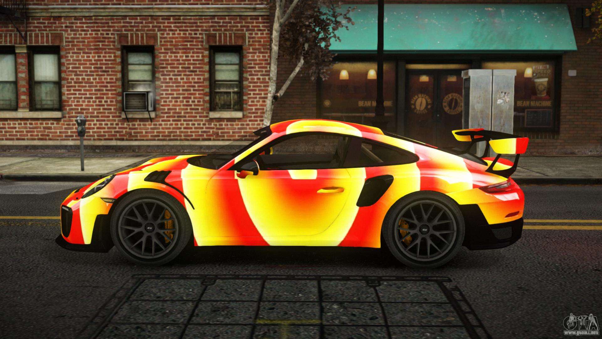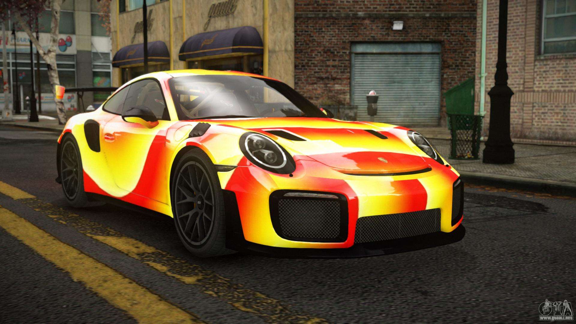 Puedes apreciar todo el encanto del coche descargando el Porsche 911 GT2 Mumutian S12 mod para GTA 4 haciendo clic en los enlaces de abajo. El mod se instala automáticamente en dos clics, por defecto sustituye al Banshee, o elige cualquier otro vehículo del juego que quieras transformar.