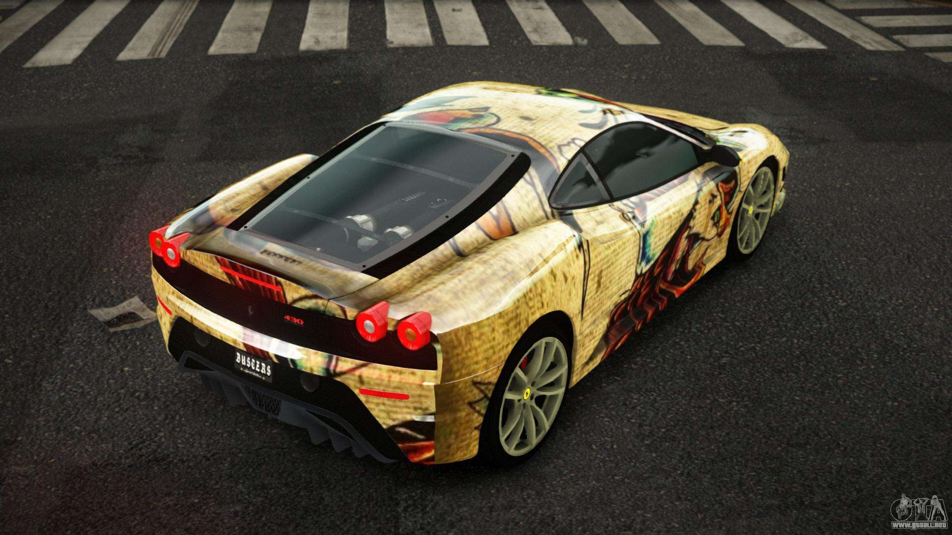 Puedes apreciar todo el encanto del coche descargando el Ferrari F430 Jangoah S10 mod para GTA 4 haciendo clic en los enlaces de abajo. El mod se instala automáticamente con dos clics, por defecto sustituye a Feltzer, o elige cualquier otro vehículo del juego que quieras transformar.