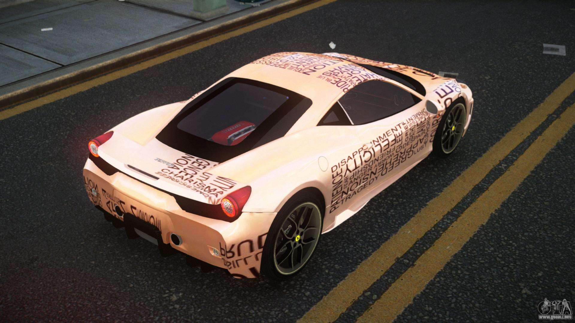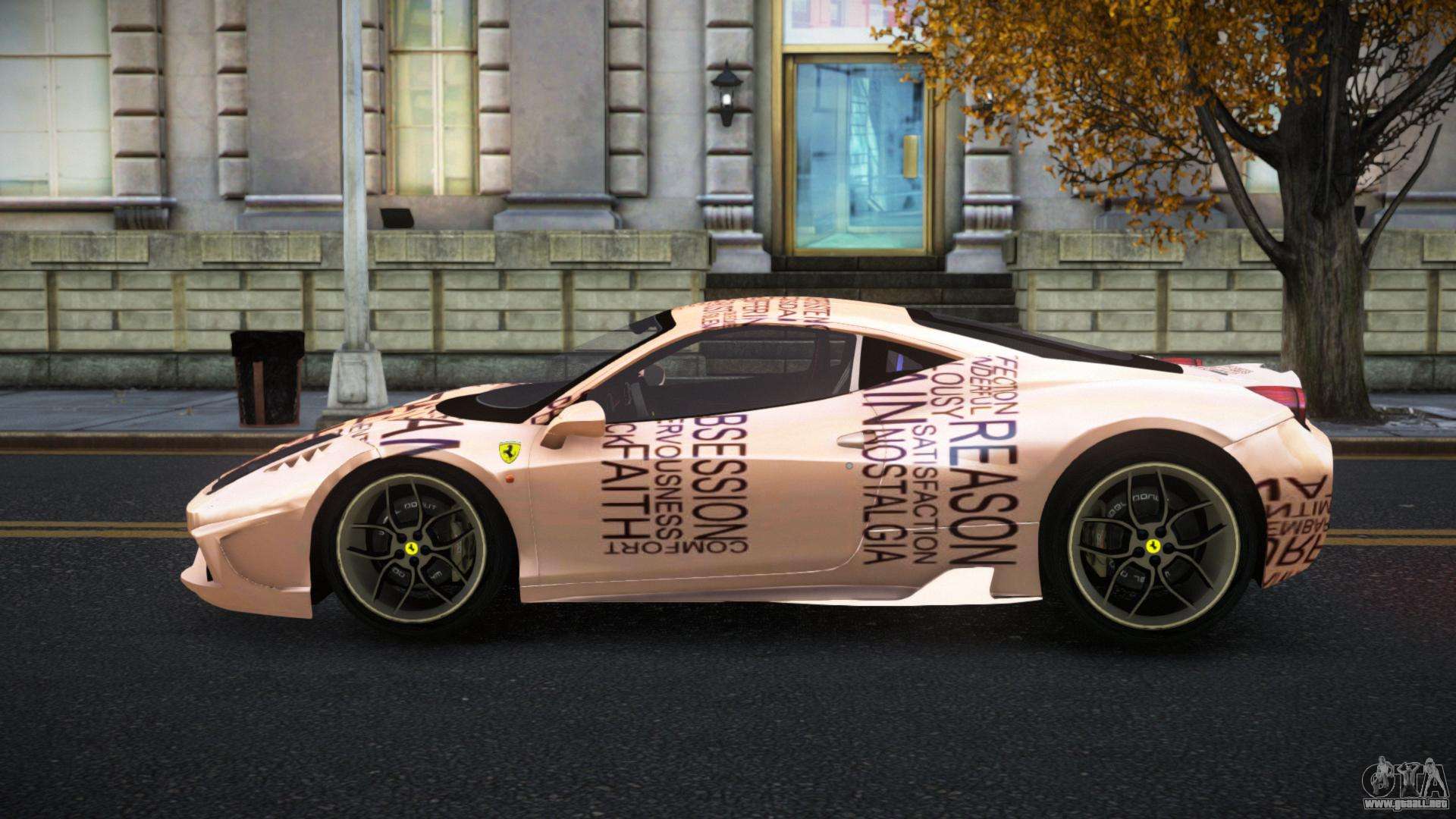 Echa un vistazo al mod Ferrari 458 Jenbel S8 para GTA 4, que logra un equilibrio perfecto entre estilo, sofisticación y atletismo. Si te gusta la aventura, entonces este coche es para ti. El estilo robusto no deja lugar a dudas de que el coche será un gran compañero.