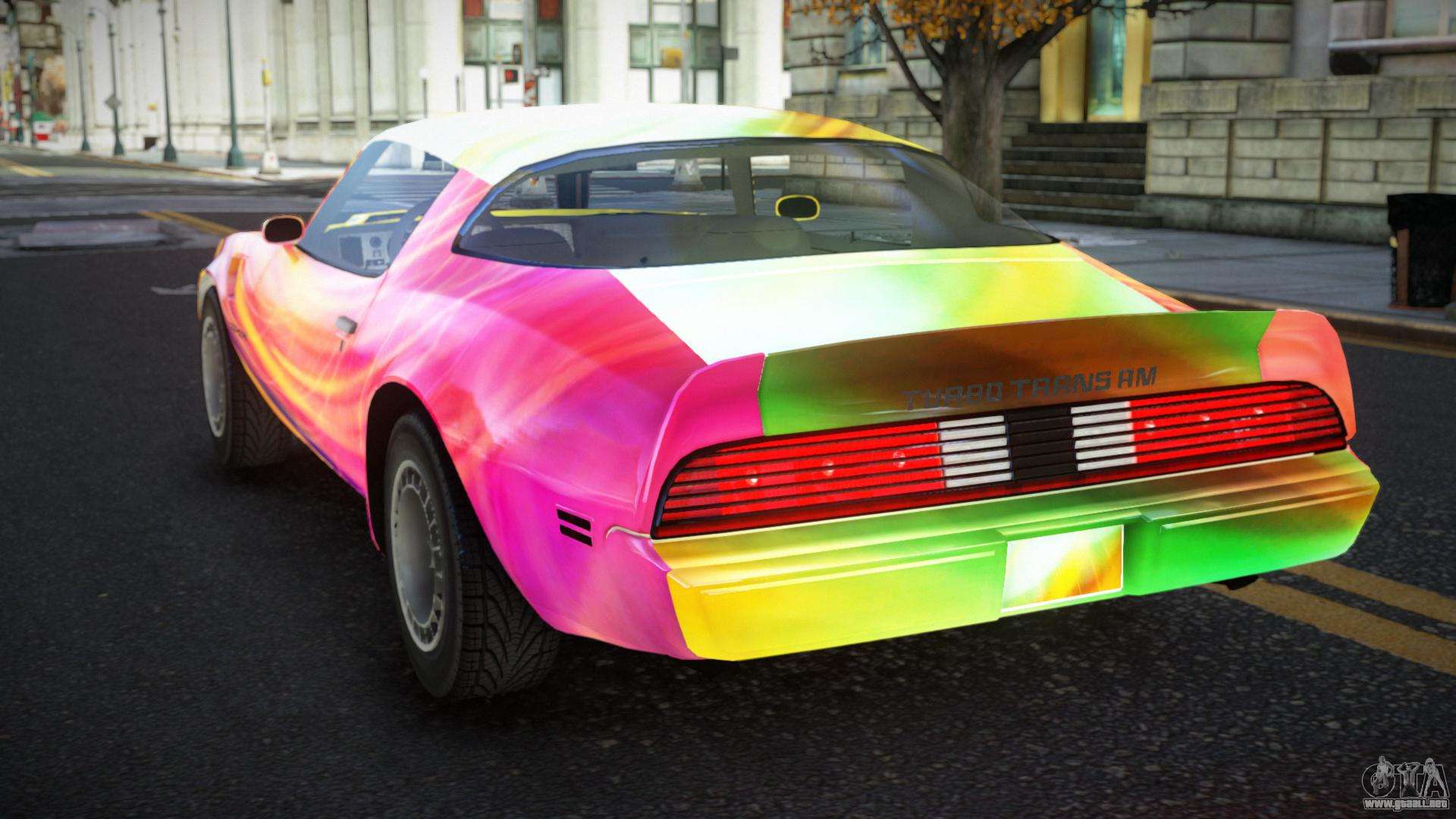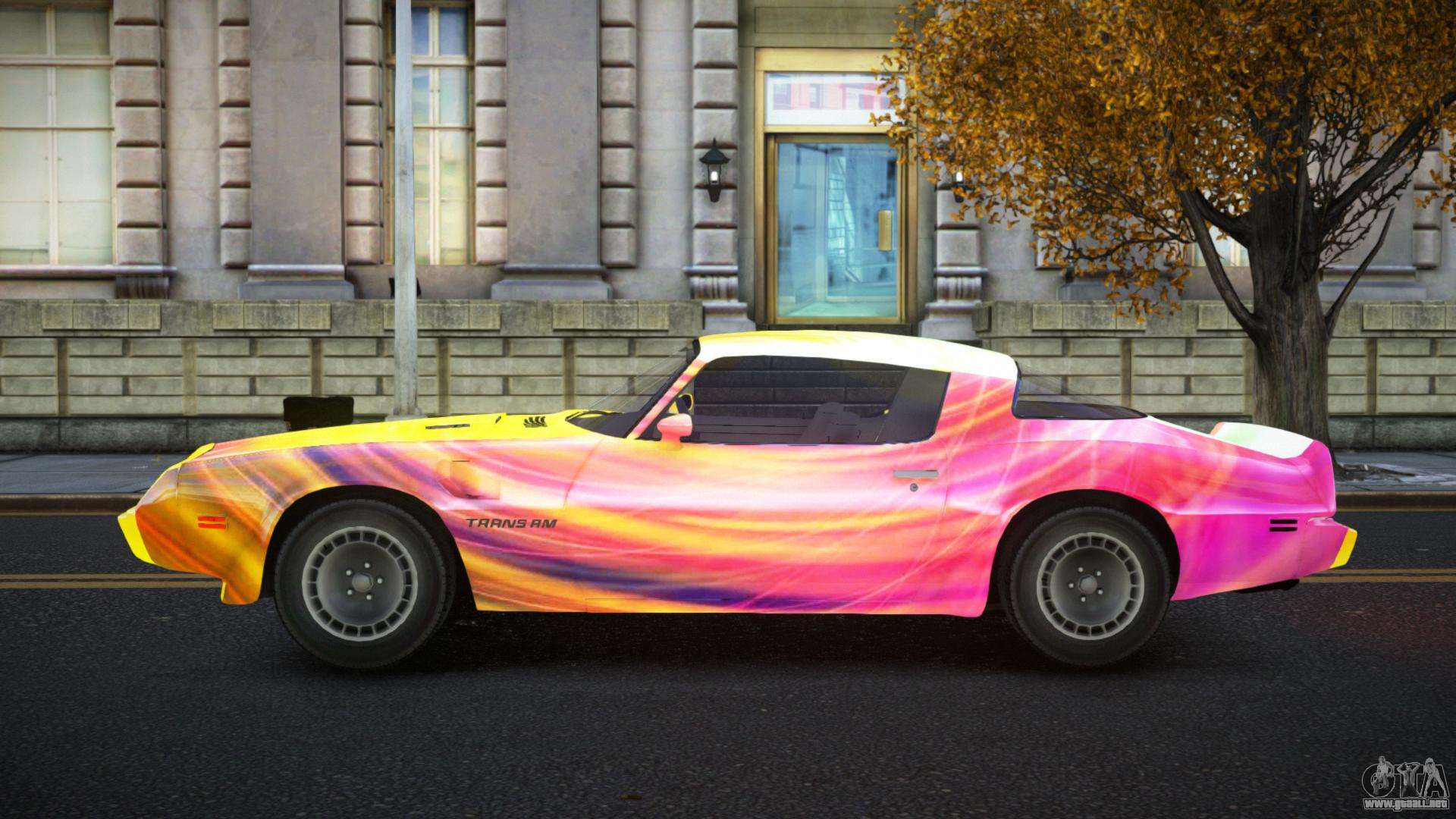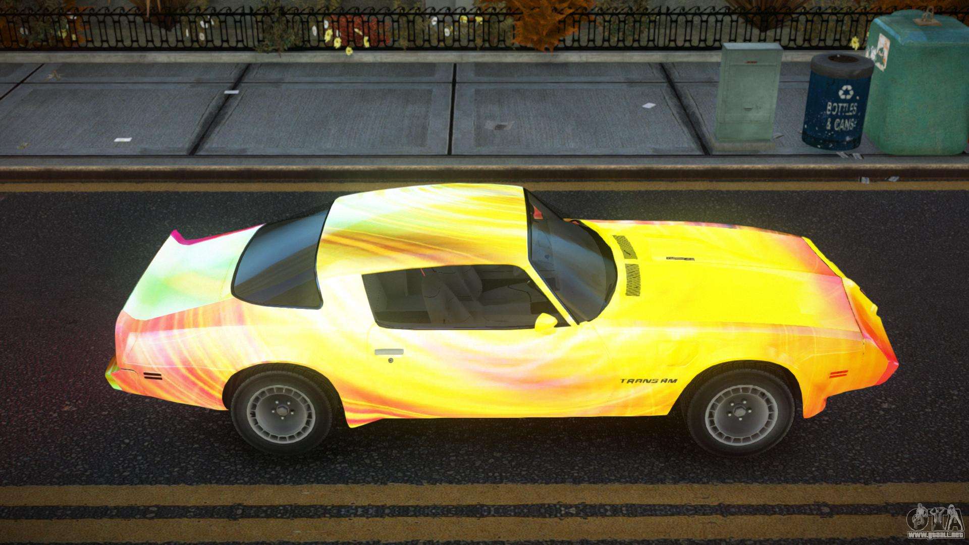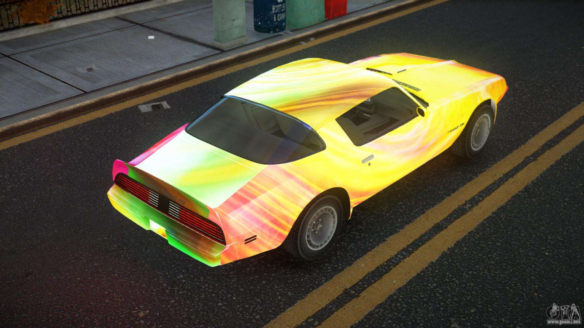El mod Pontiac Trans AM Betyke S1 para GTA 4 se puede descargar a continuación en los enlaces. La modificación se instala automáticamente de forma predeterminada para reemplazar el Feltzer, y con la ayuda de nuestro instalador puedes reemplazarlo con cualquier vehículo de juego estándar.