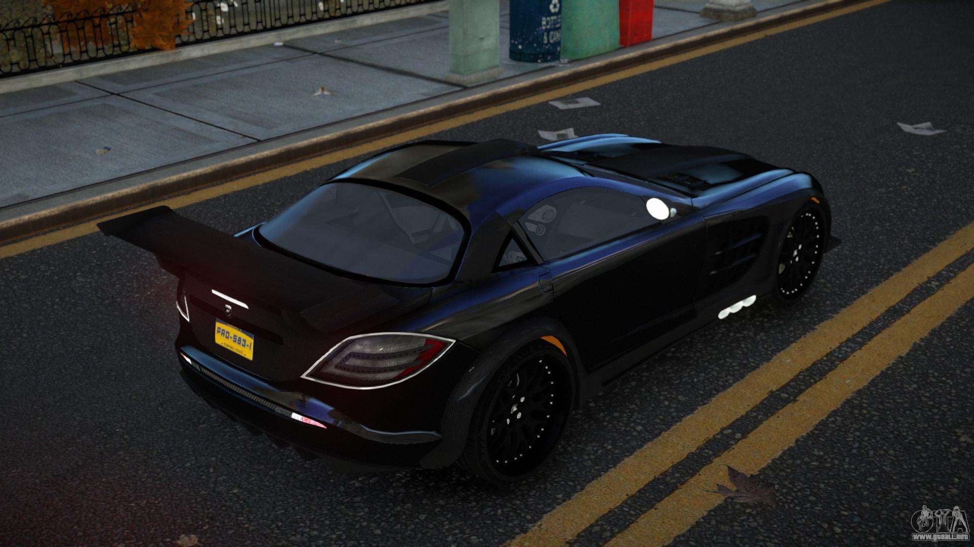 El mod Mercedes-Benz SLR Pufow para GTA 4 se puede descargar a continuación en los enlaces. La modificación se instala automáticamente de forma predeterminada para reemplazar el Super GT y, con la ayuda de nuestro instalador, también puede reemplazarlo con cualquier vehículo de juego estándar.