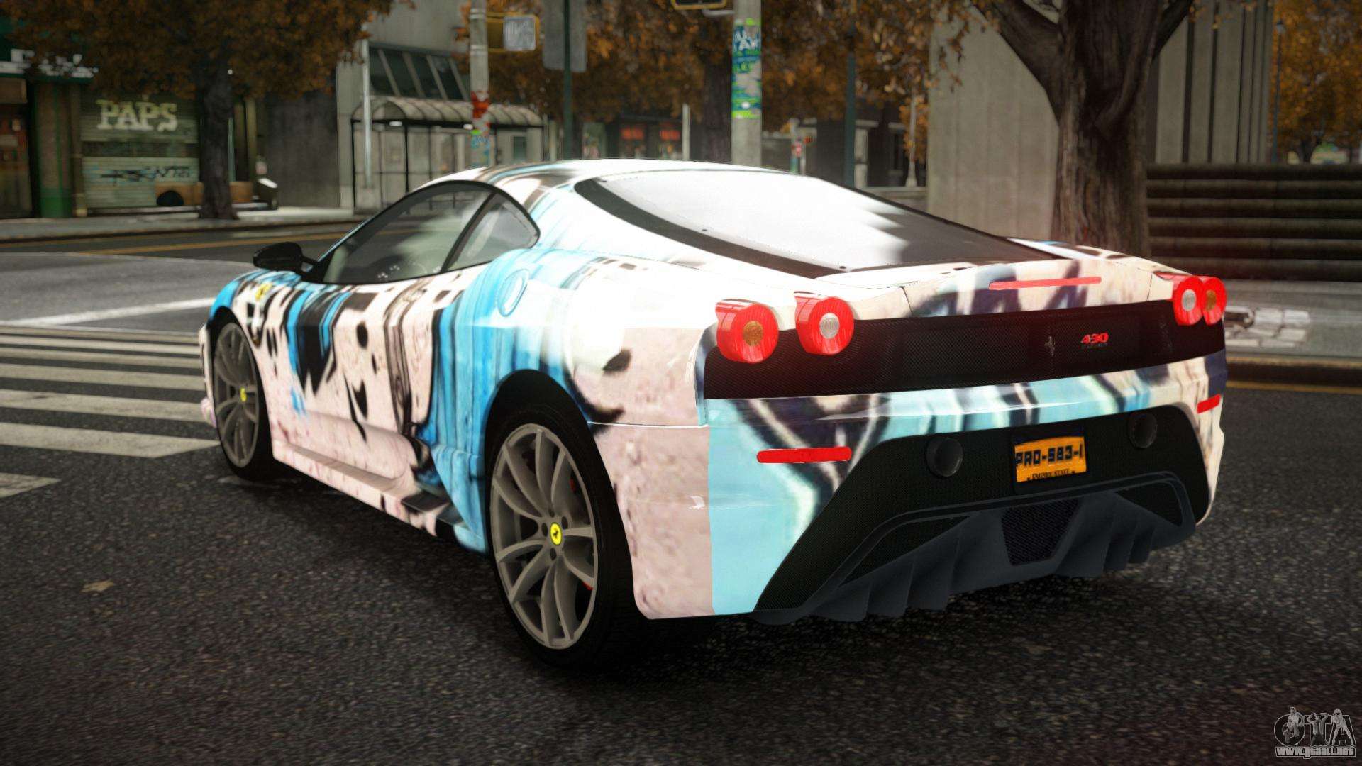 Mod Ferrari F430 Jaynien S1 para GTA 4 se puede descargar a continuación en los enlaces. La modificación se instala automáticamente de forma predeterminada para reemplazar el Feltzer, y con la ayuda de nuestro instalador puedes reemplazarlo con cualquier vehículo de juego estándar.