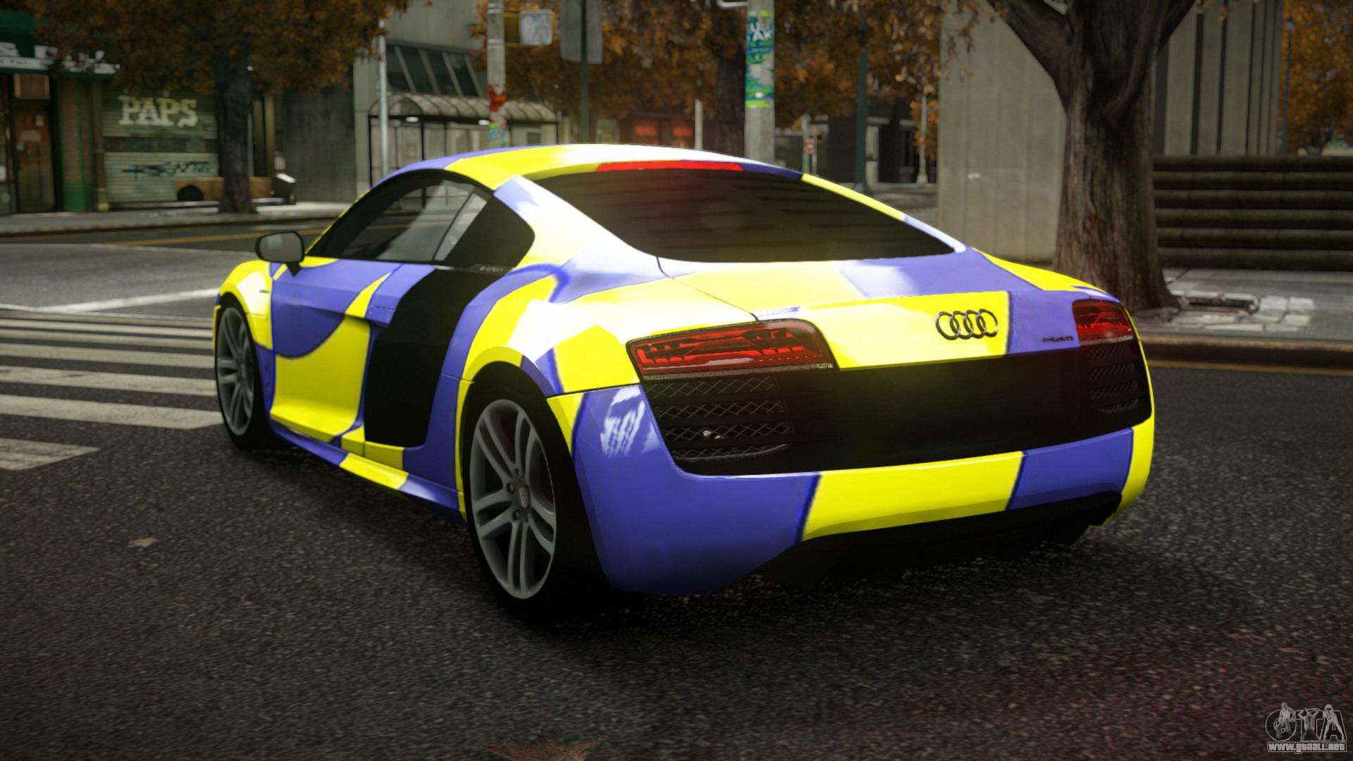 Puedes apreciar todo el encanto del coche descargando el Audi R8 Marahry S10 mod para GTA 4 haciendo clic en los enlaces de abajo. El mod se instala automáticamente con dos clics, por defecto sustituye a Feltzer, o elige cualquier otro vehículo del juego que quieras transformar.