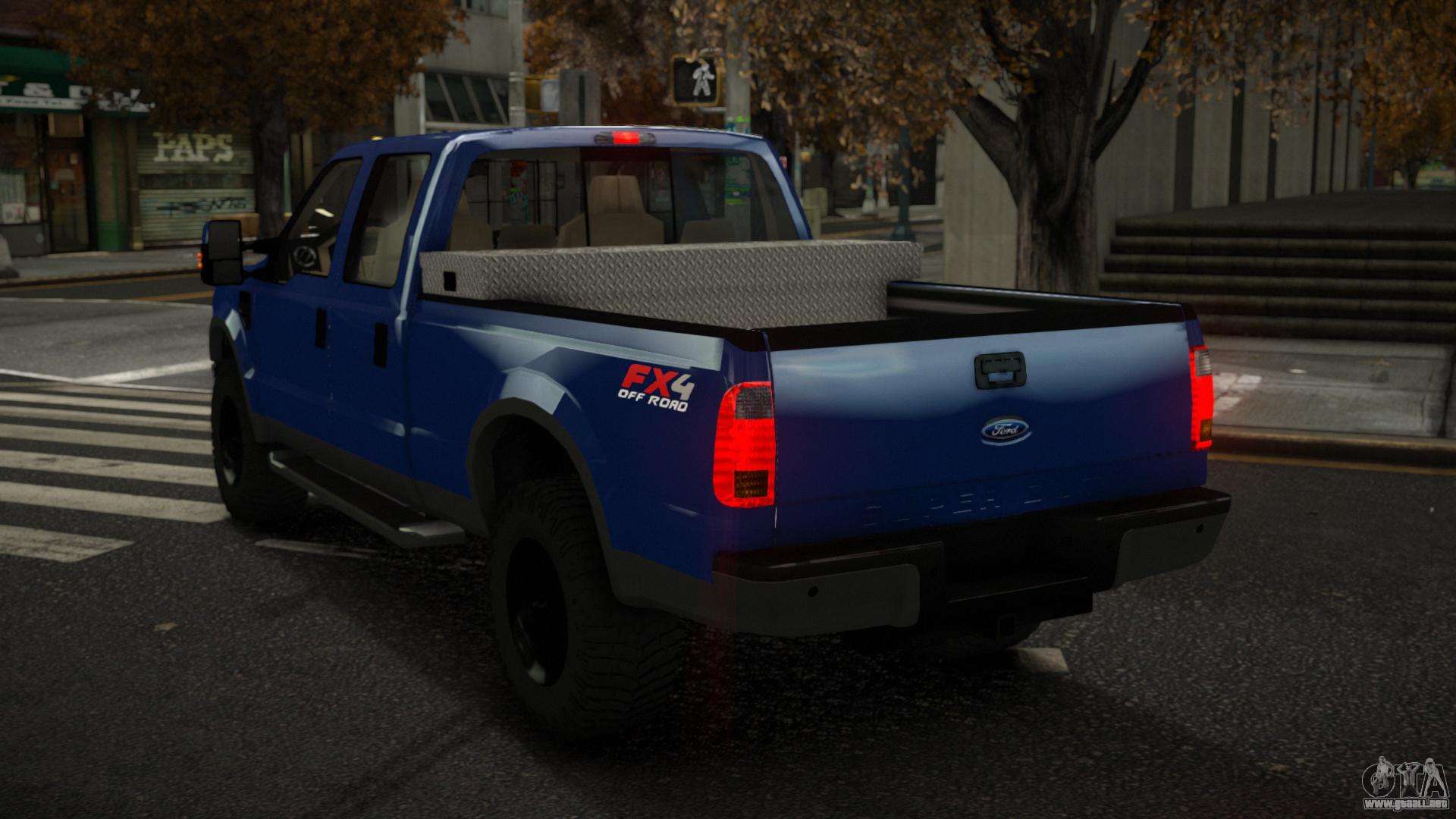 Para descargar el mod de coche Ford F250 Rodcum para GTA 4 de forma gratuita, solo necesita hacer clic en los enlaces en la parte inferior de la página. Nuestro instalador automatizado te ayudará a instalar un mod para reemplazar el Cavalcade FXT con dos clics, o puedes elegir cualquier otro vehículo estándar en el juego.