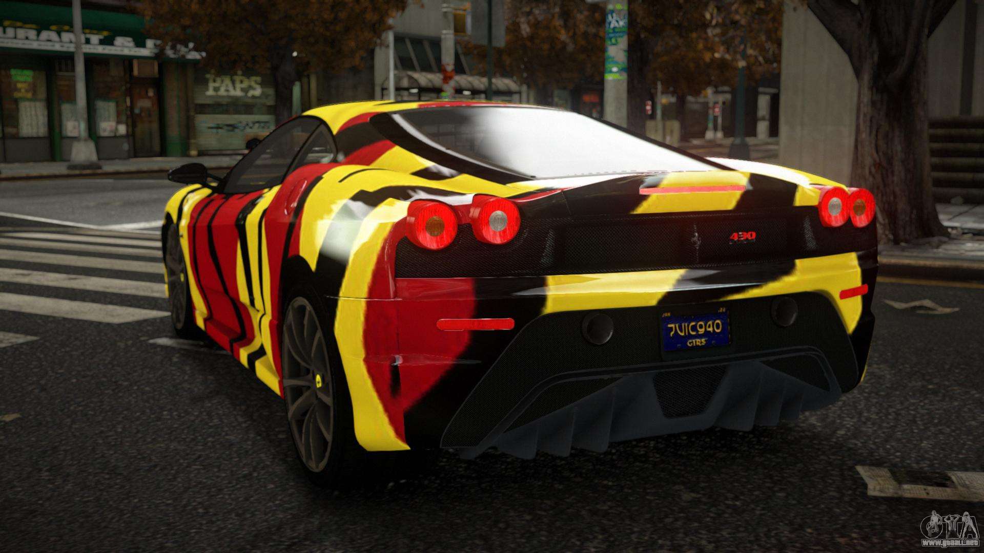 Mod Ferrari F430 Casck S11 para GTA 4 se puede descargar a continuación en los enlaces. La modificación se instala automáticamente de forma predeterminada para reemplazar el Feltzer, y con la ayuda de nuestro instalador puedes reemplazarlo con cualquier vehículo de juego estándar.