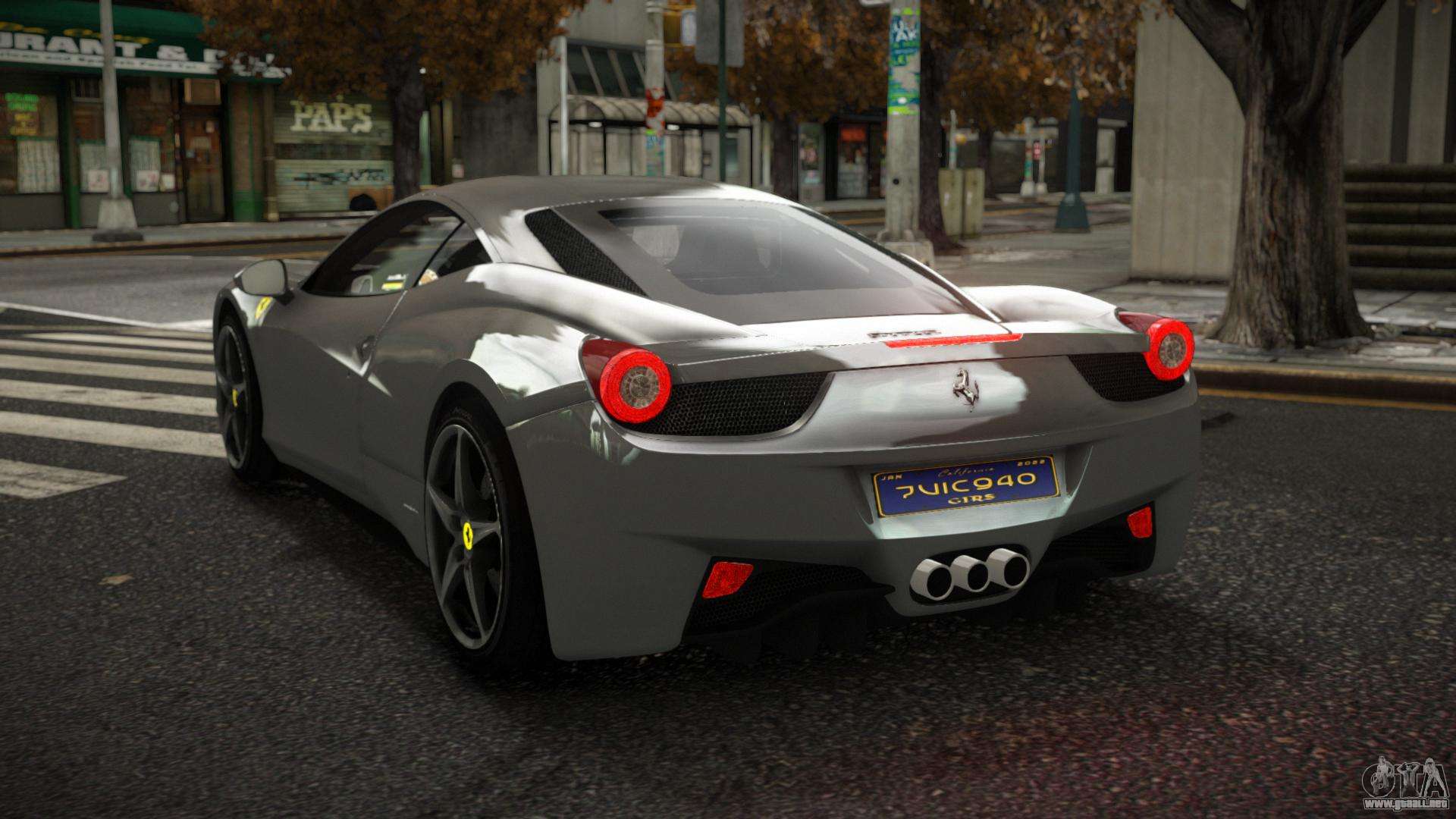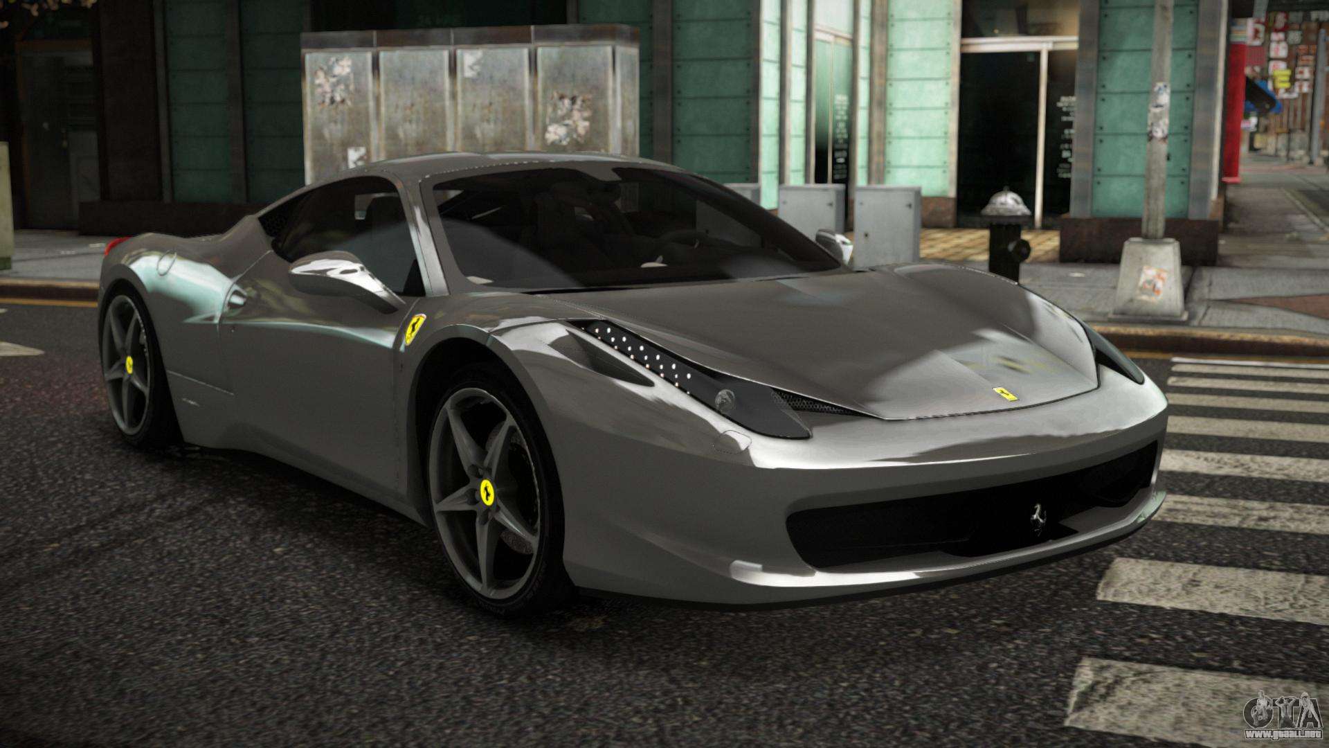 El mod Ferrari 458 Xarnidog para GTA 4 se puede descargar a continuación en los enlaces. El mod se instala automáticamente de forma predeterminada para reemplazar el Turismo, y también puede usar nuestro instalador para reemplazarlo con cualquier vehículo de juego estándar.