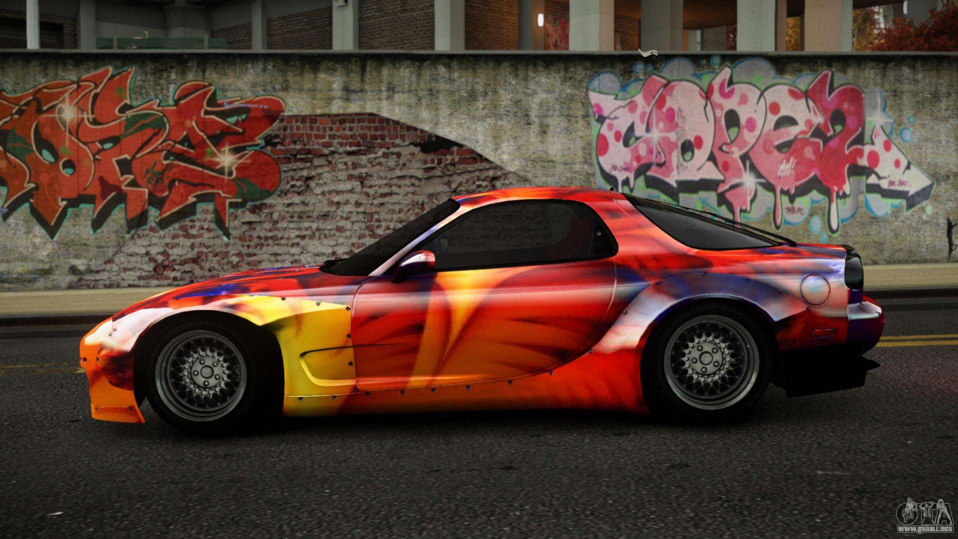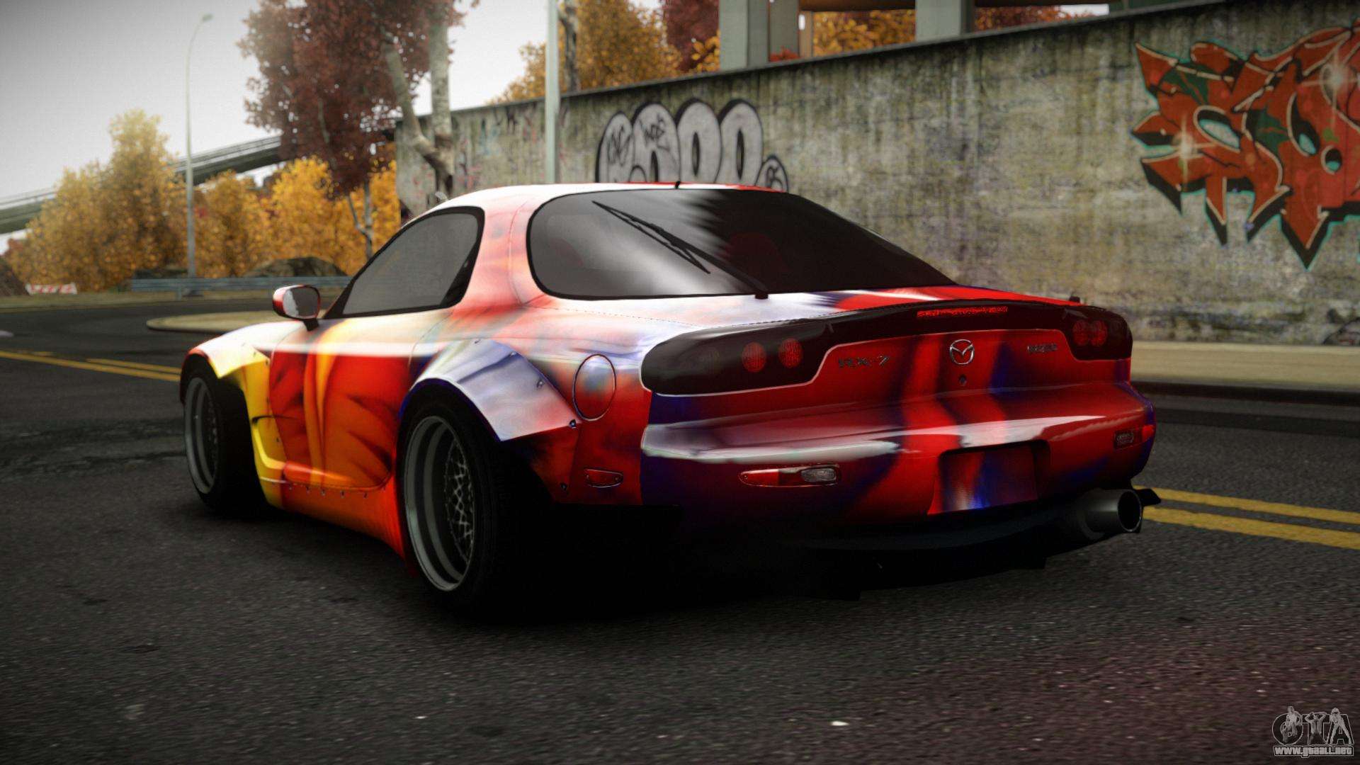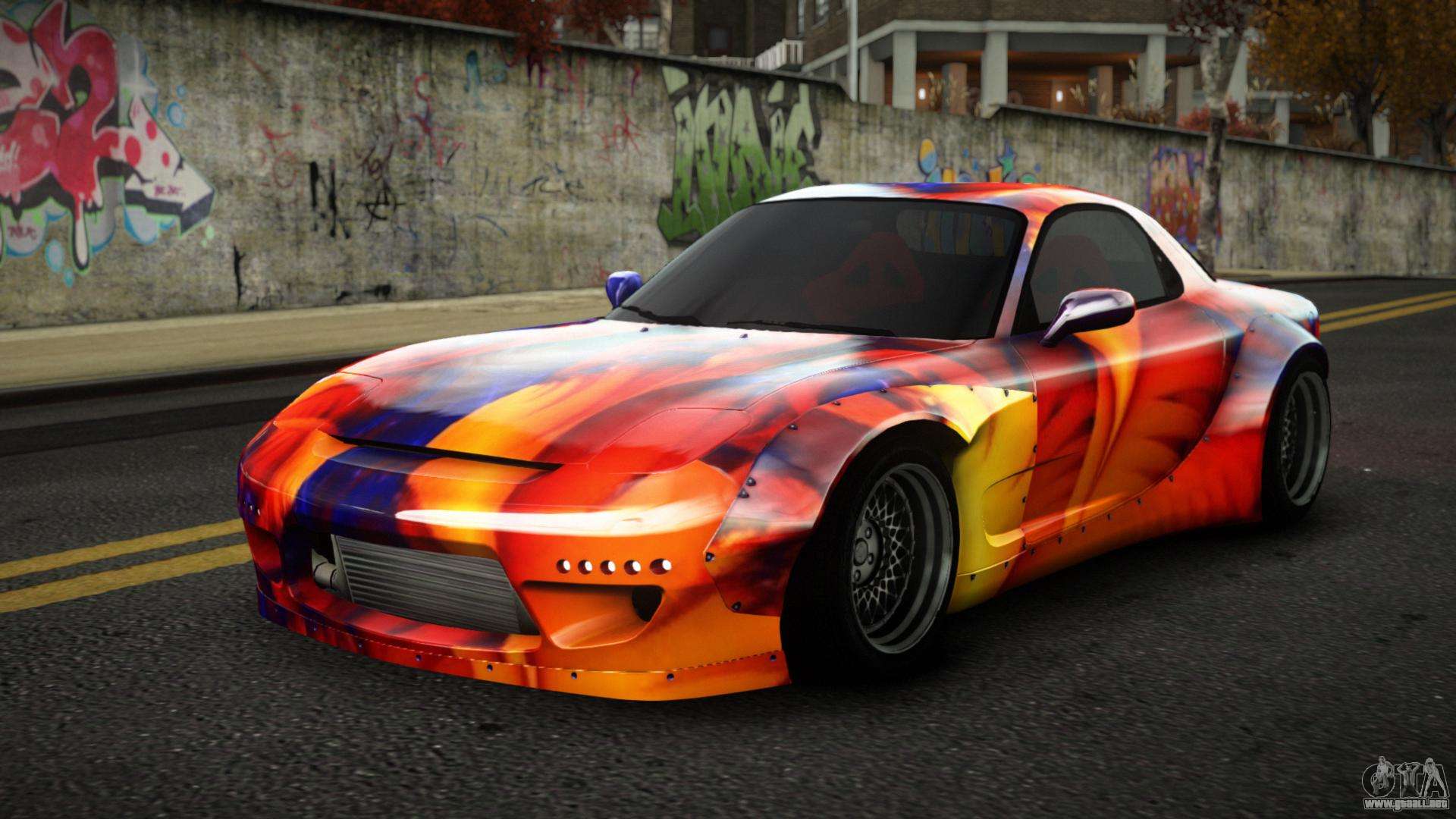 Puedes apreciar todo el encanto del coche descargando el mod Mazda RX-7 Cabeson S12 para GTA 4 haciendo clic en los enlaces de abajo. El mod se instala automáticamente con dos clics, por defecto reemplaza a la Banshee o elige cualquier otro vehículo del juego que quieras transformar.