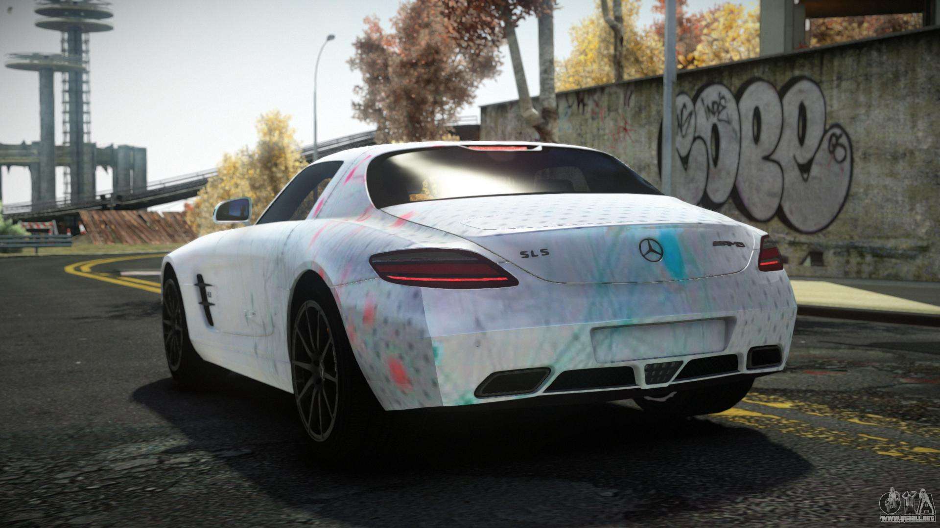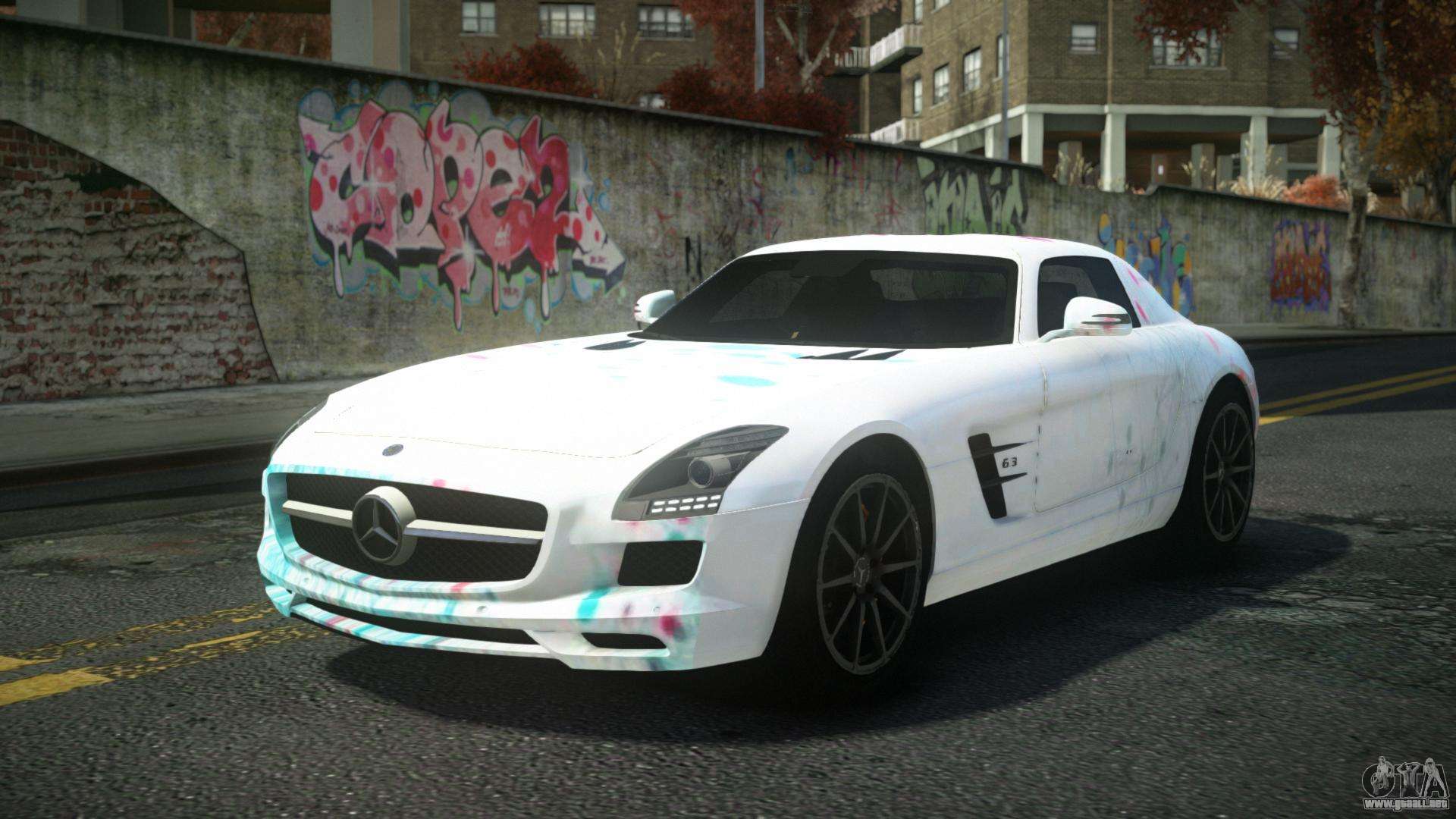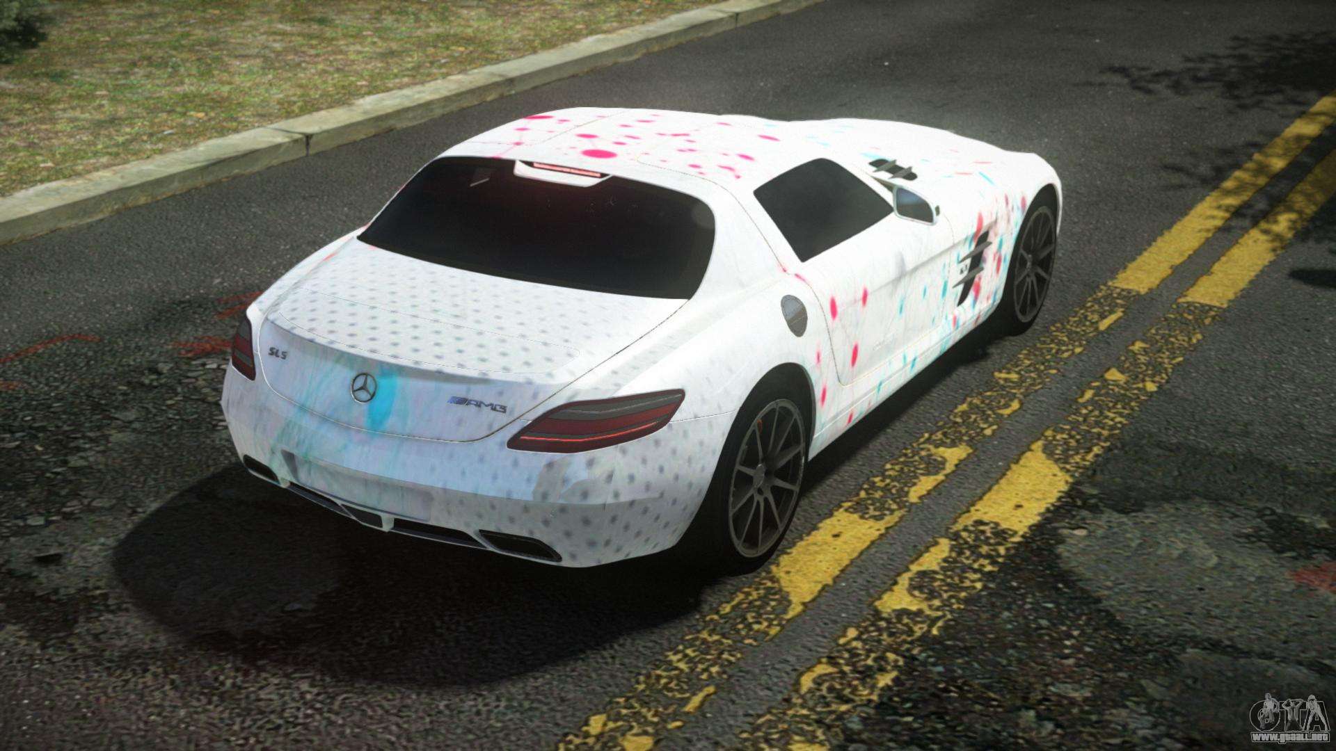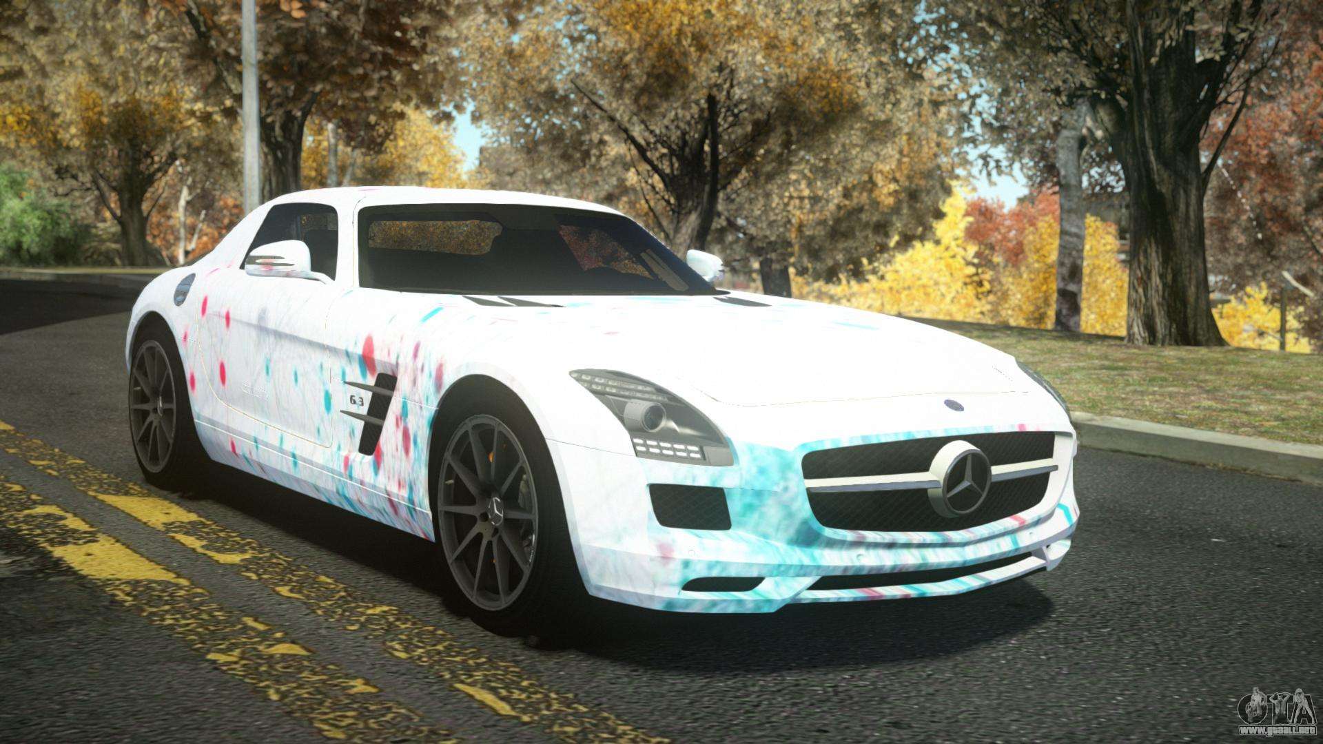 El Mercedes-Benz SLS AMG Anjoleia S3 para GTA 4 se puede descargar a continuación en los enlaces. La modificación se instala automáticamente por defecto para reemplazar la Banshee, y con la ayuda de nuestro instalador también puedes sustituirla por cualquier vehículo estándar del juego.