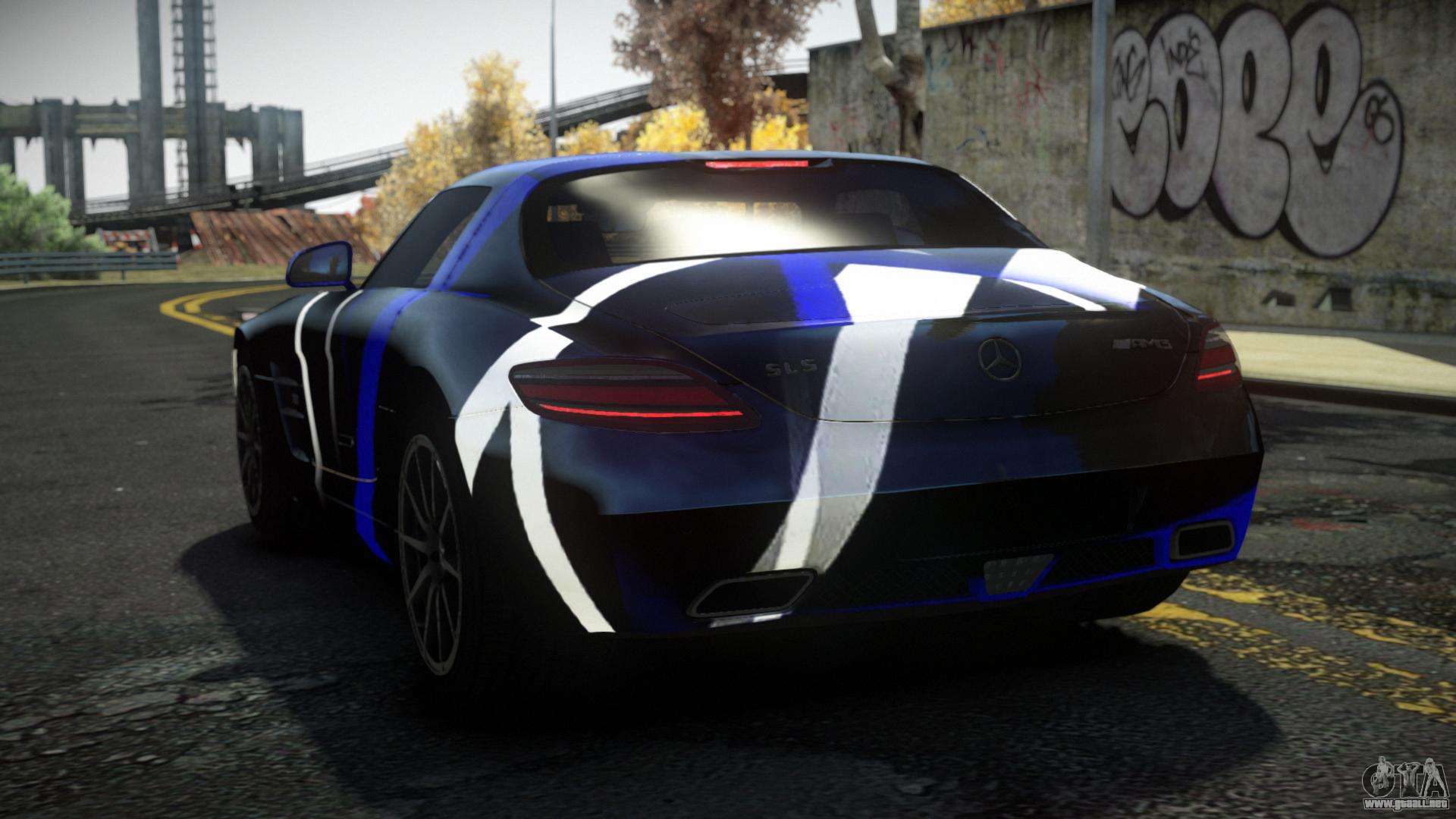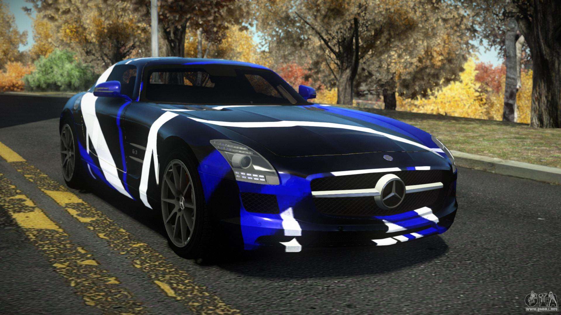 Para descargar gratis el mod de coche Mercedes-Benz SLS AMG Anjoleia S9 para GTA 4, solo tienes que hacer clic en los enlaces al final de la página. Nuestro instalador automático te ayudará a instalar el mod de reemplazo de Banshee en dos clics, o puedes elegir cualquier otro vehículo estándar del juego.