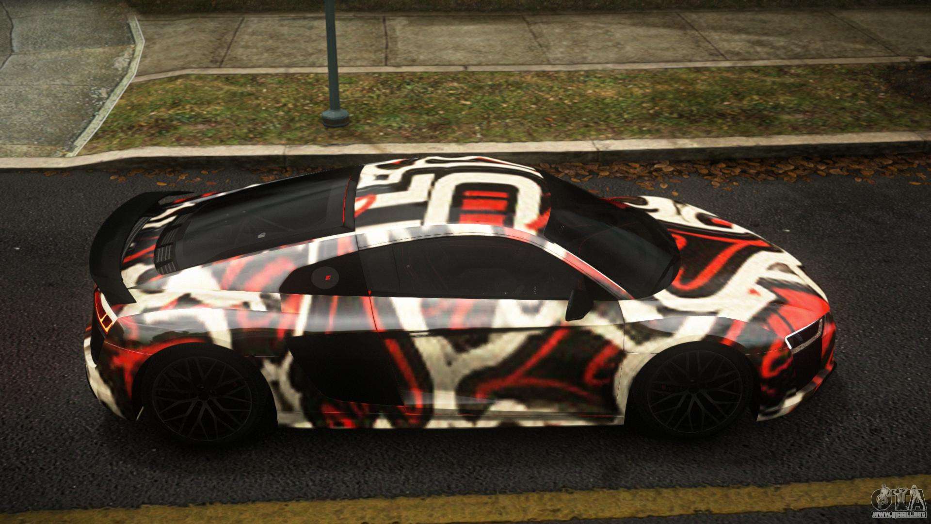 El mod Audi R8 Ellaphel S13 para GTA 4 se puede descargar a continuación en los enlaces. La modificación se instala automáticamente por defecto para reemplazar la Banshee, y con la ayuda de nuestro instalador también puedes sustituirla por cualquier vehículo estándar del juego.
