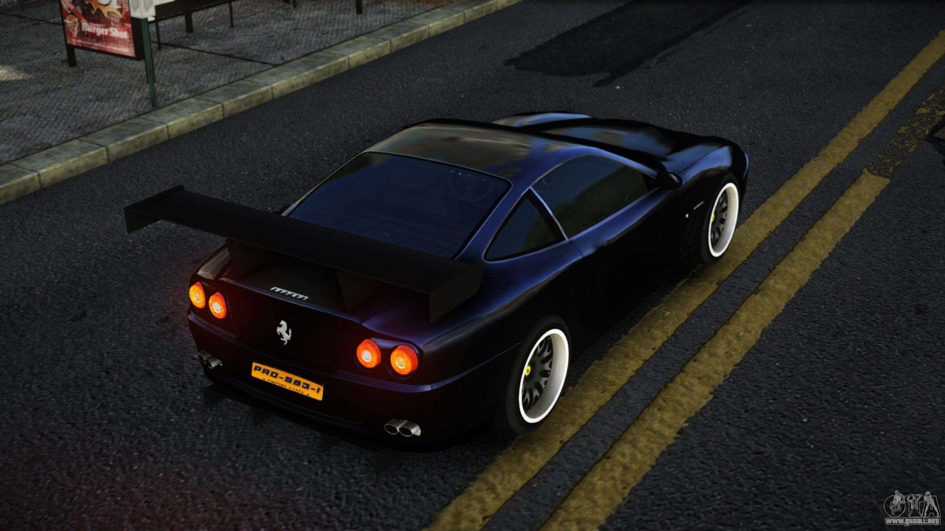 No te niegues el placer, sigue los enlaces de abajo y descarga el mod Ferrari 575 Ufuj para GTA 4. La instalación automática en dos clics, por defecto, reemplazará a Feltzer. Y además, gracias a nuestro instalador, puedes elegir qué coche estándar de juego quieres mejorar.