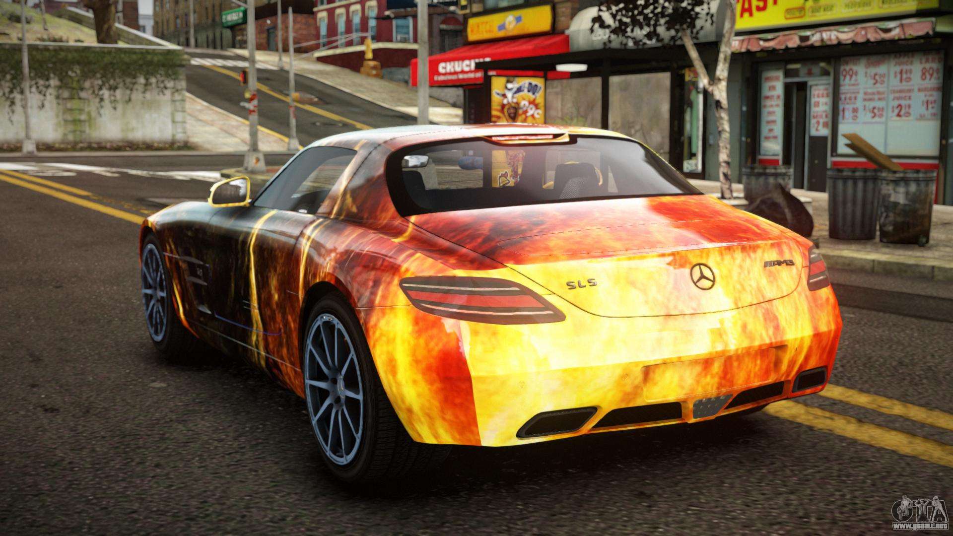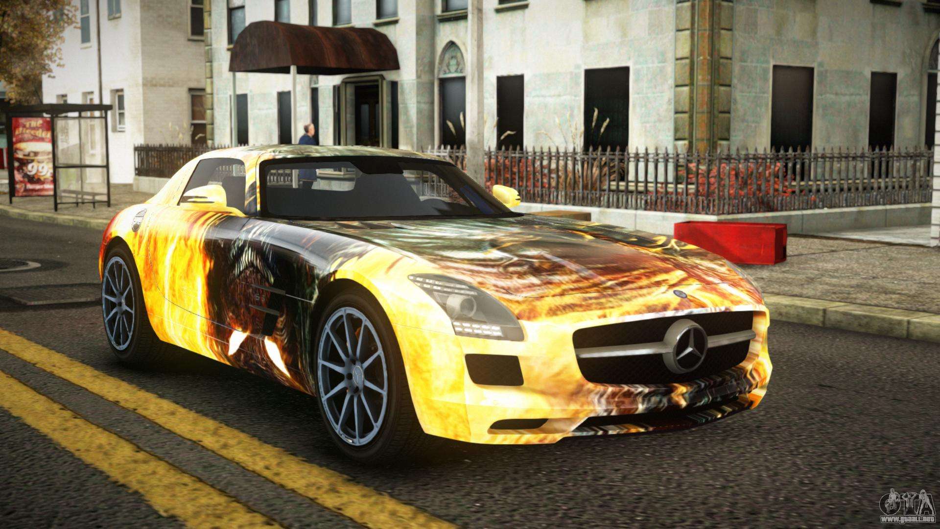 Puedes descargar gratis el mod de coche Mercedes-Benz SLS Lanlie S3 para GTA 4 haciendo clic en el enlace de abajo. Instalación automática, por defecto para reemplazar a Feltzer, o con la ayuda del instalador puedes seleccionar cualquier otro coche estándar del juego.