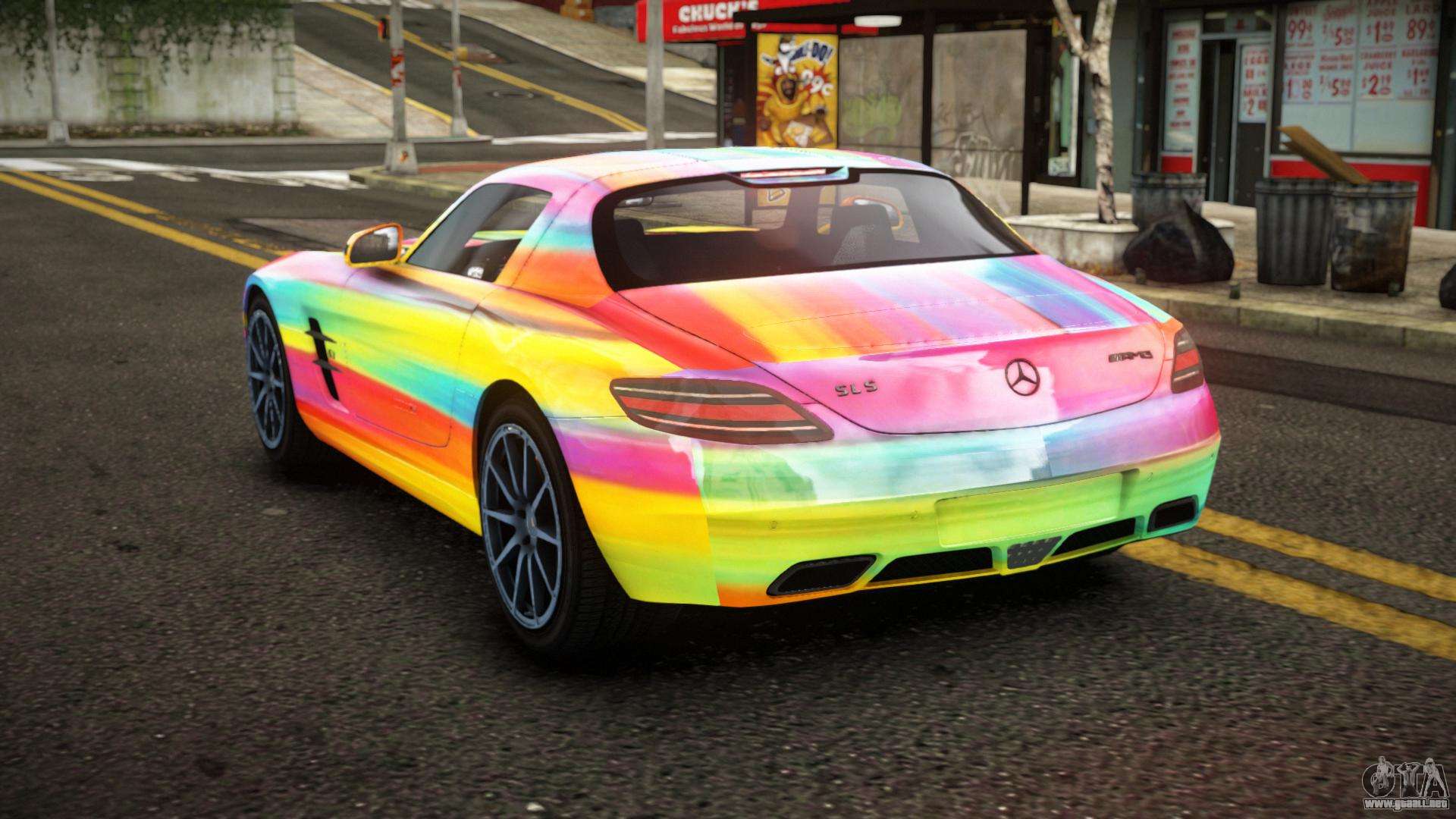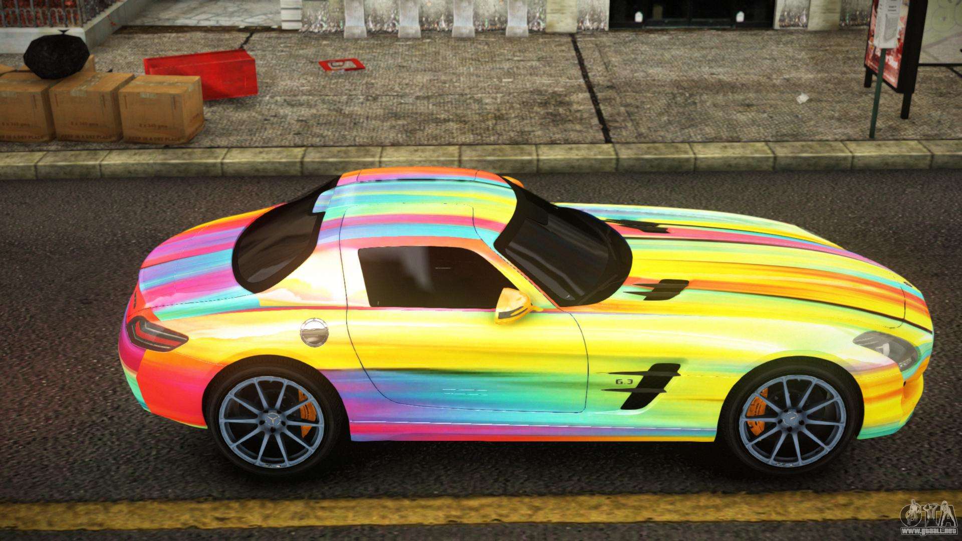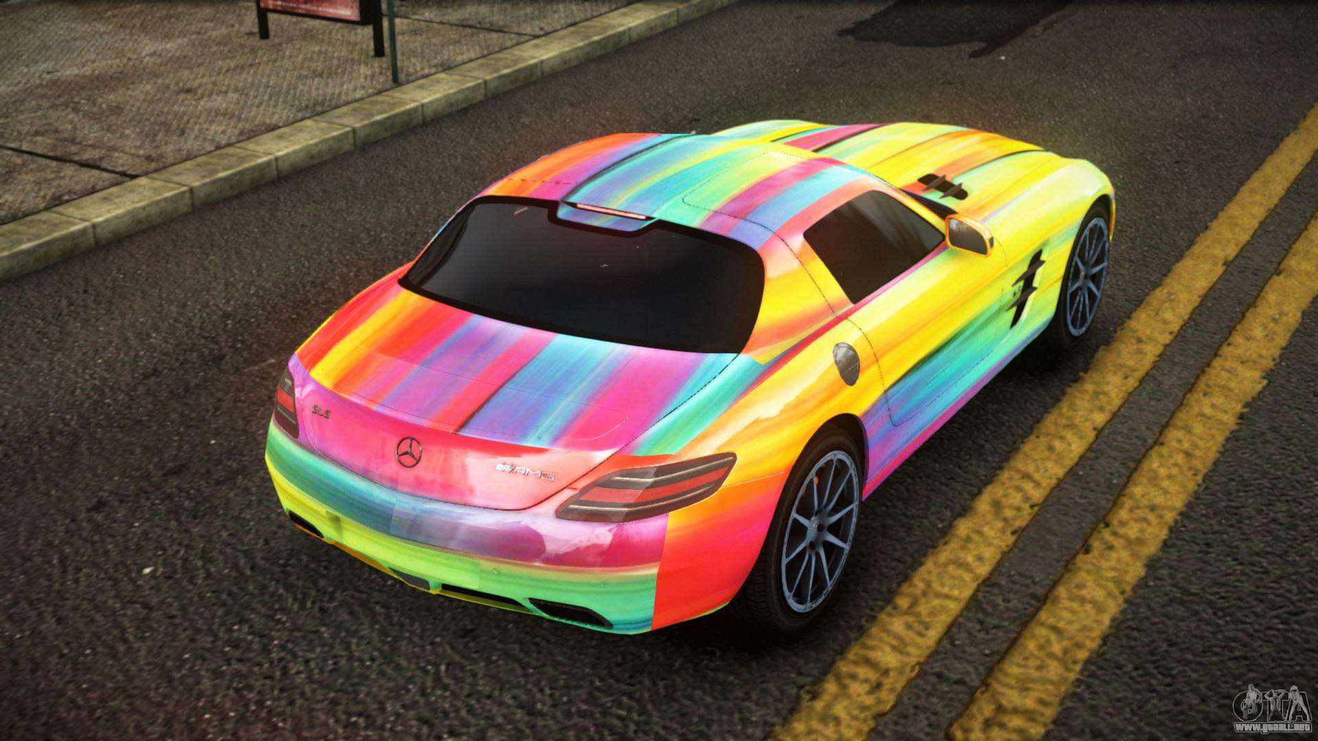 Puedes descargar la modificación Mercedes-Benz SLS Lanlie S14 para GTA 4 usando los enlaces que aparecen a continuación. Por defecto, el mod se instala en dos clics para reemplazar a Feltzer. Gracias a nuestro instalador con instalación automática, puedes reemplazar cualquier otro vehículo estándar del juego.