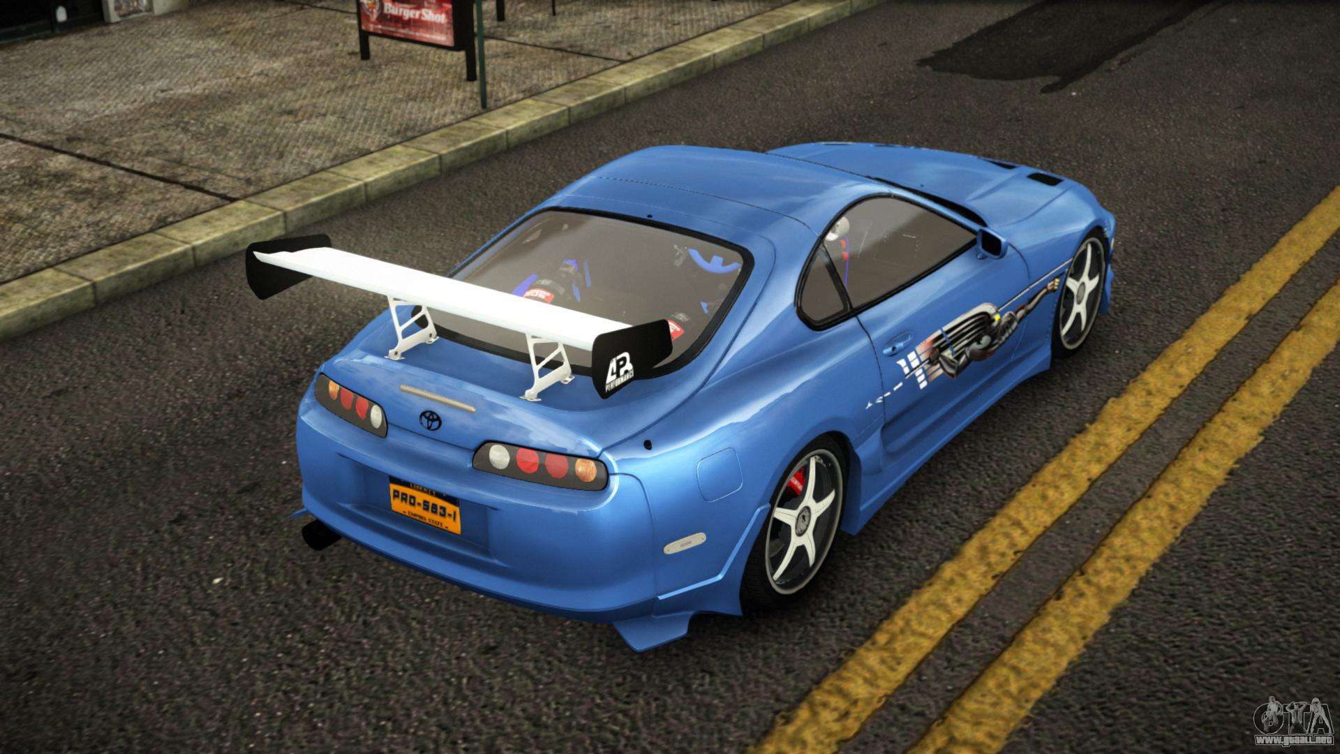 Para descargar gratis el mod Toyota Supra Mijubeju para GTA 4, solo tienes que hacer clic en los enlaces al final de la página. Nuestro instalador automático te ayudará a instalar el mod de reemplazo del Sabre en dos clics, o puedes elegir cualquier otro vehículo estándar del juego.