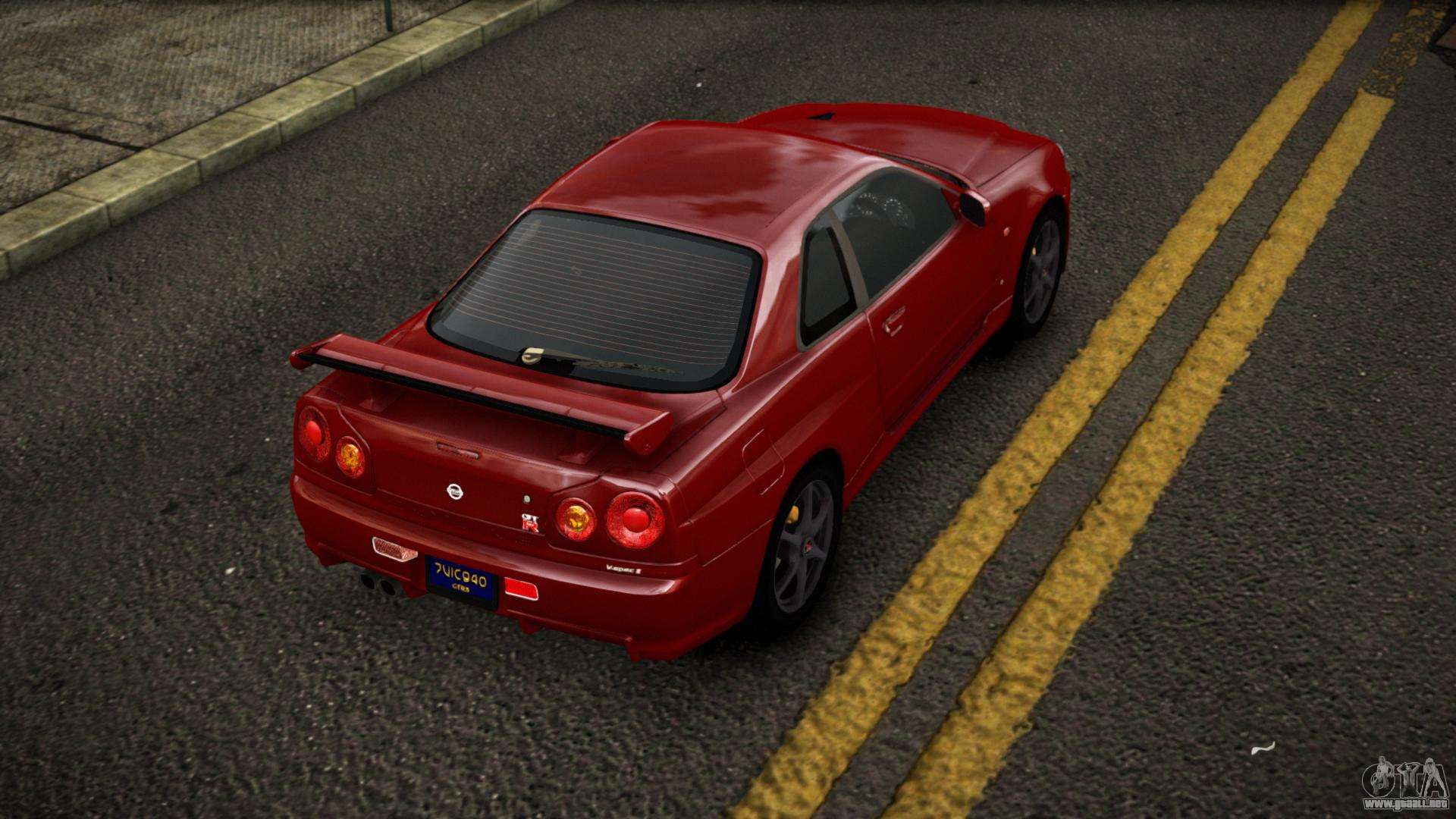 Puedes apreciar todo el encanto del coche descargando el mod Nissan Skyline R34 Erxah para GTA 4 haciendo clic en los enlaces de abajo. El mod se instala automáticamente en dos clics, por defecto reemplaza a Feltzer, o elige cualquier otro vehículo del juego que quieras transformar.