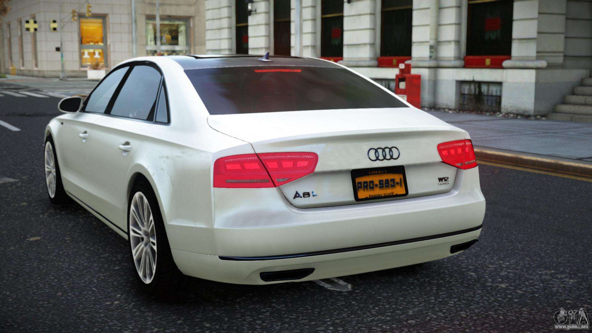 El mod Audi A8 Kujoxiz para GTA 4 se puede descargar a continuación en los enlaces. La modificación se instala automáticamente por defecto para reemplazar el Admiral, y con la ayuda de nuestro instalador también puedes sustituirlo por cualquier vehículo estándar del juego.