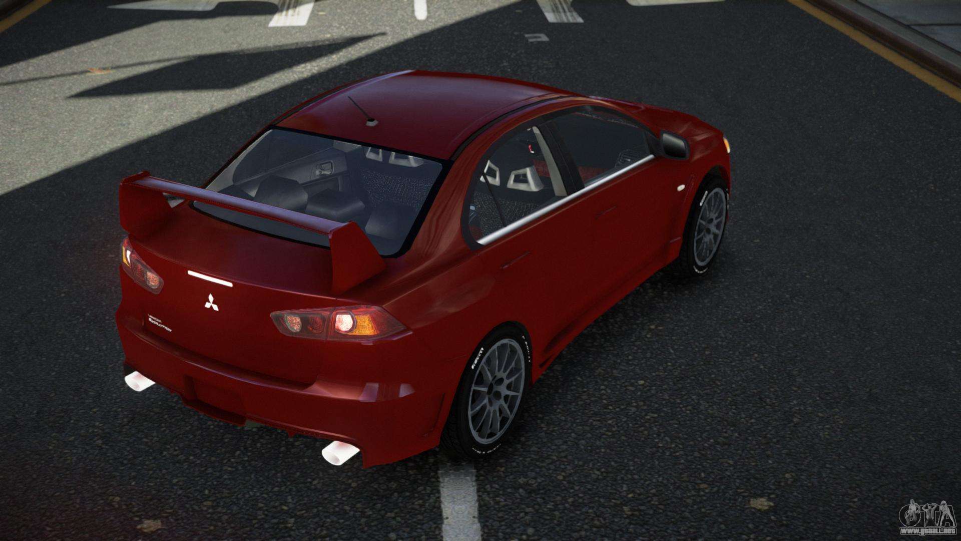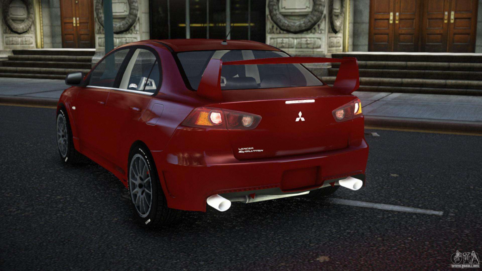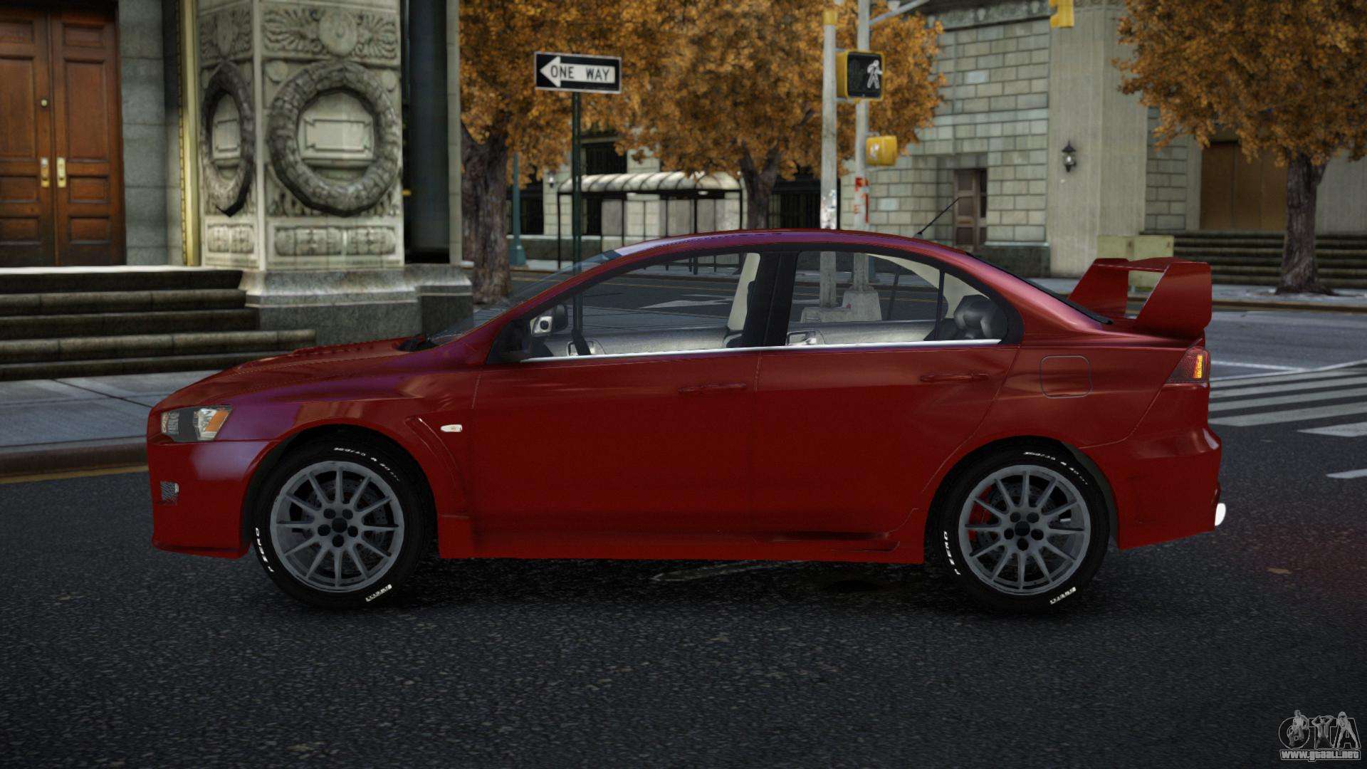Puedes apreciar todo el encanto del coche descargando el mod Mitsubishi Lancer Evolution X Tuzwaru para GTA 4 haciendo clic en los enlaces de abajo. El mod se instala automáticamente con dos clics, por defecto reemplaza al Almirante, o elige cualquier otro vehículo del juego que quieras transformar.