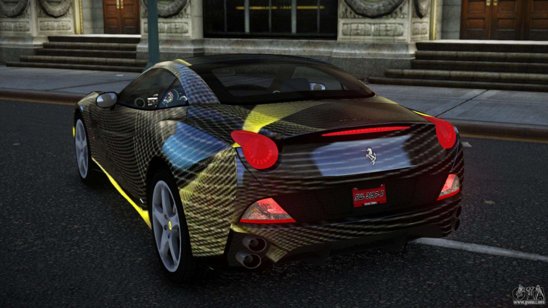 ¡Saludos, amante de Grand Theft Auto! Te sugiero prestar atención al mod Ferrari California Mirahin S12 para GTA 4. ¡Siente toda la potencia, calidad y gracia de este coche por ti mismo!