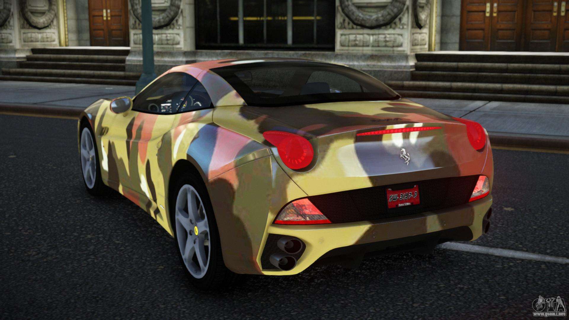 El mod Ferrari California Mirahin S13 para GTA 4 se puede descargar a continuación en los enlaces. La modificación se instala automáticamente por defecto para reemplazar la Banshee, y con la ayuda de nuestro instalador también puedes sustituirla por cualquier vehículo estándar del juego.